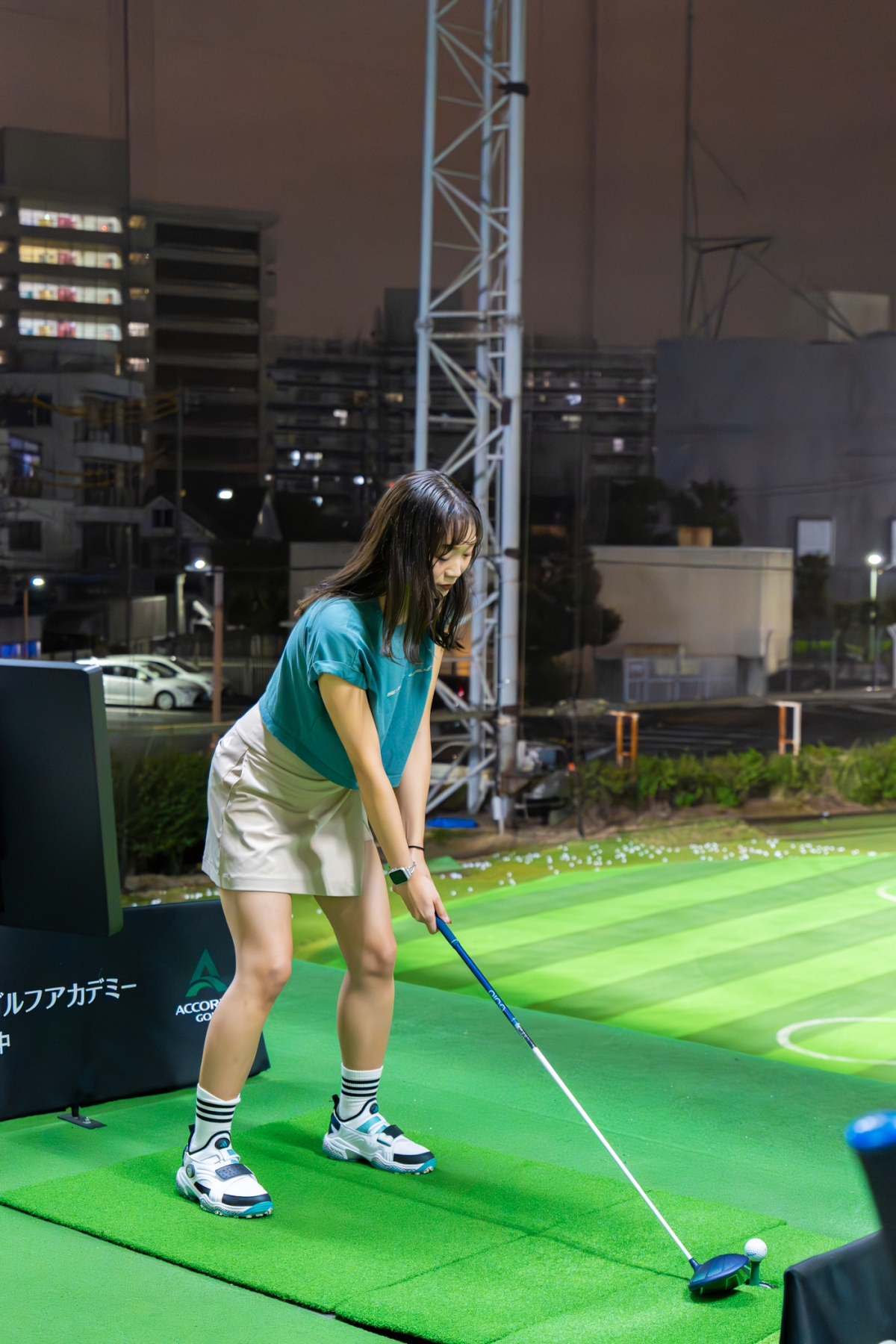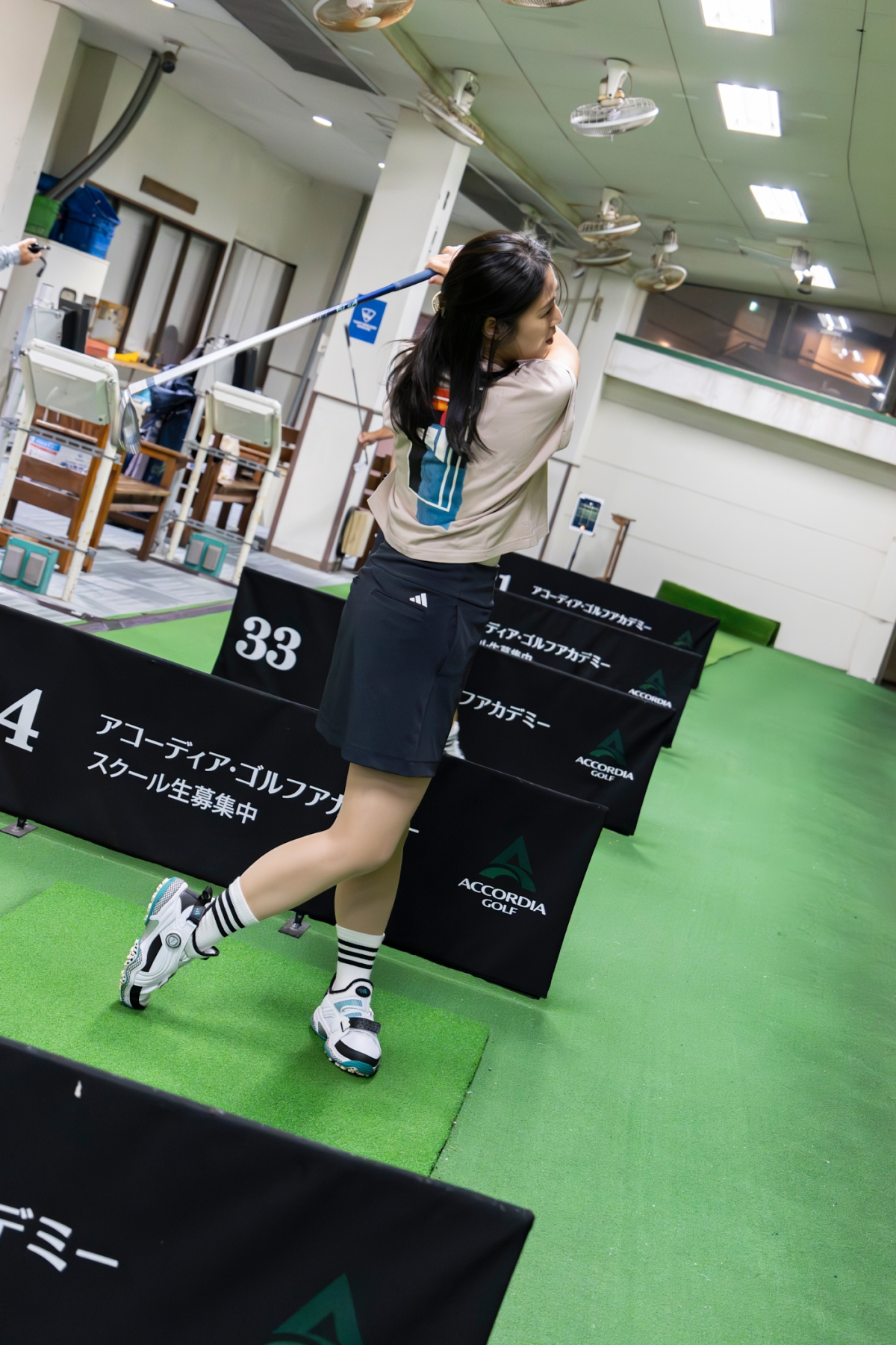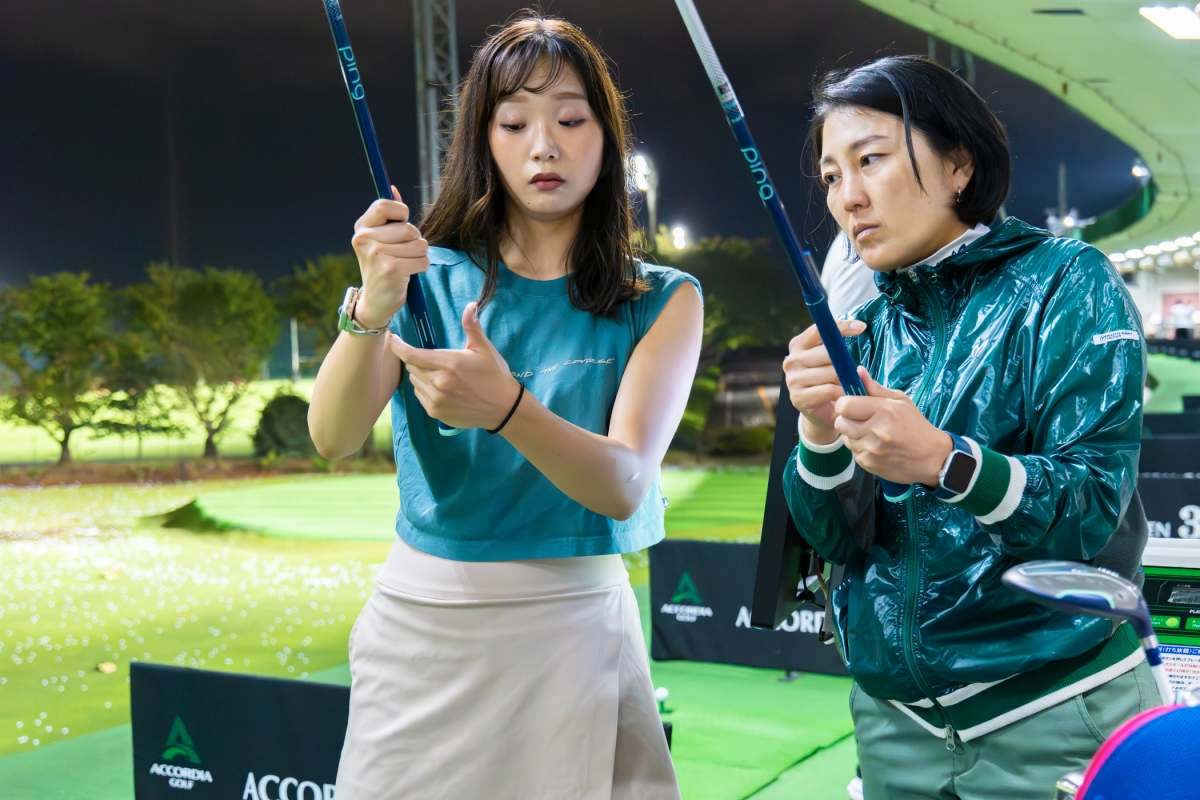練習を重ねるうちに、いつのまにかフォームが崩れている傾向も。乱れてしまった部分を入念なアドバイスをもとに直していくと、すぐさまナイスショットが出せて、自分でも驚く良い当たりを体感。基本を疎かにせず、いっかりと身に着けていくことが大切だと痛感するレッスンに。
