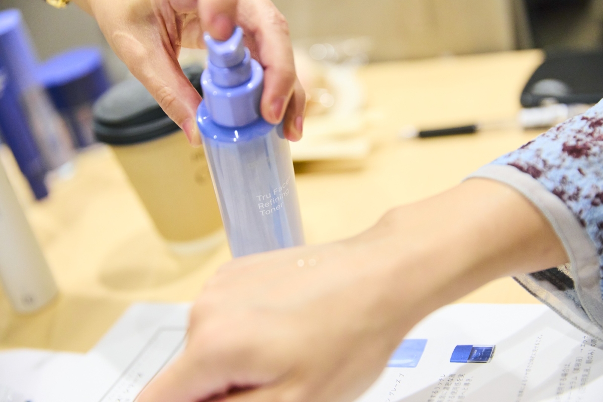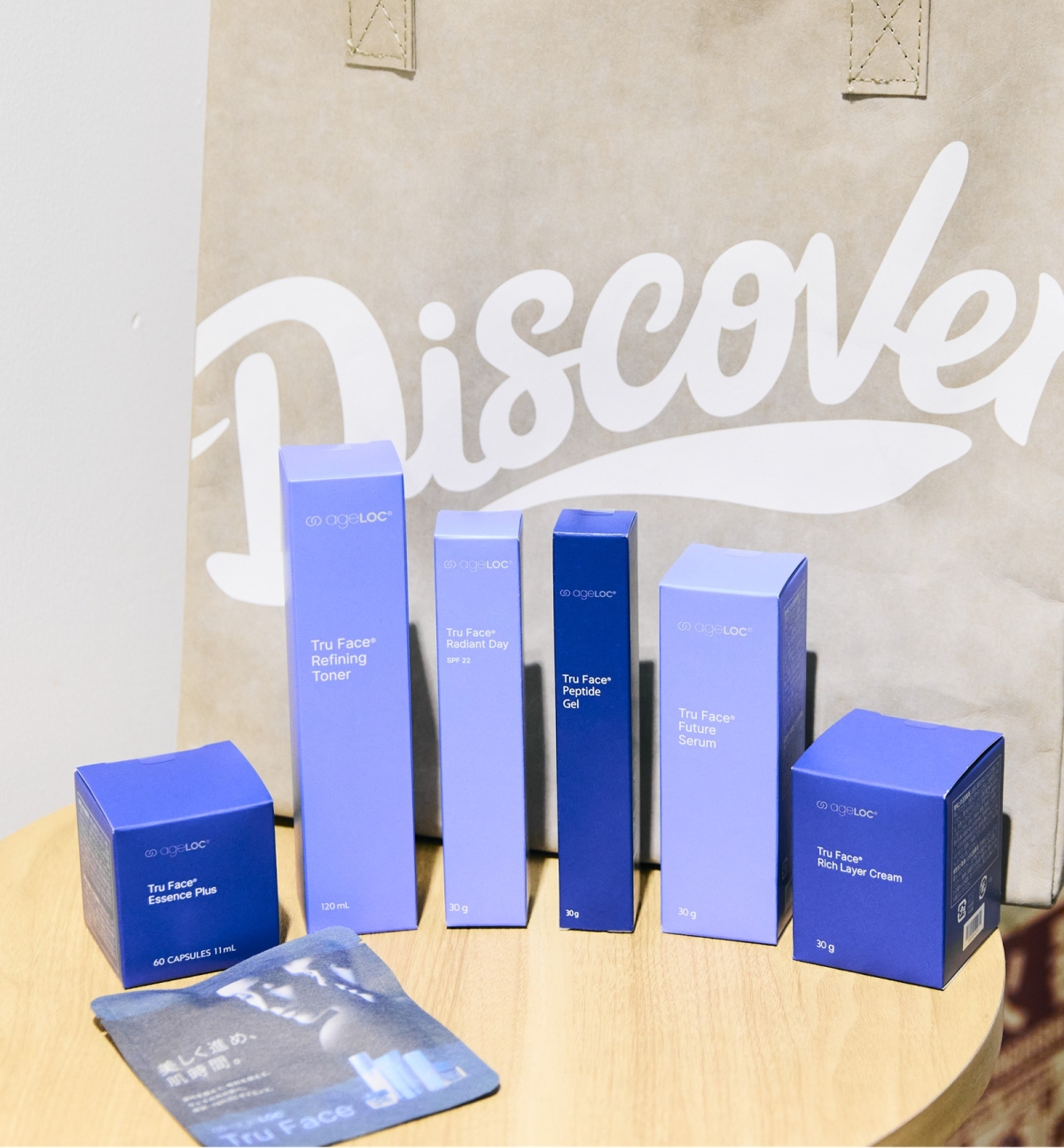 続いてのセッションでは、‟良いものだけを”という姿勢がしっかり伝わる最新のエイジングケア※1「ageLOC® トゥルー フェイス®」を実際にお試し。若々しさに関わる様々な研究による知見を活かして開発した、独自成分‟ageLOCブレンド”を配合し、年齢に応じた多角的なケアが早期にできるよう設計。シリーズは全部で6アイテム。シリーズ、ラインというとすべて順番に使わなければ…と思いがちですが、こちらの製品は自分に合わせて必要なものだけをチョイス可能。