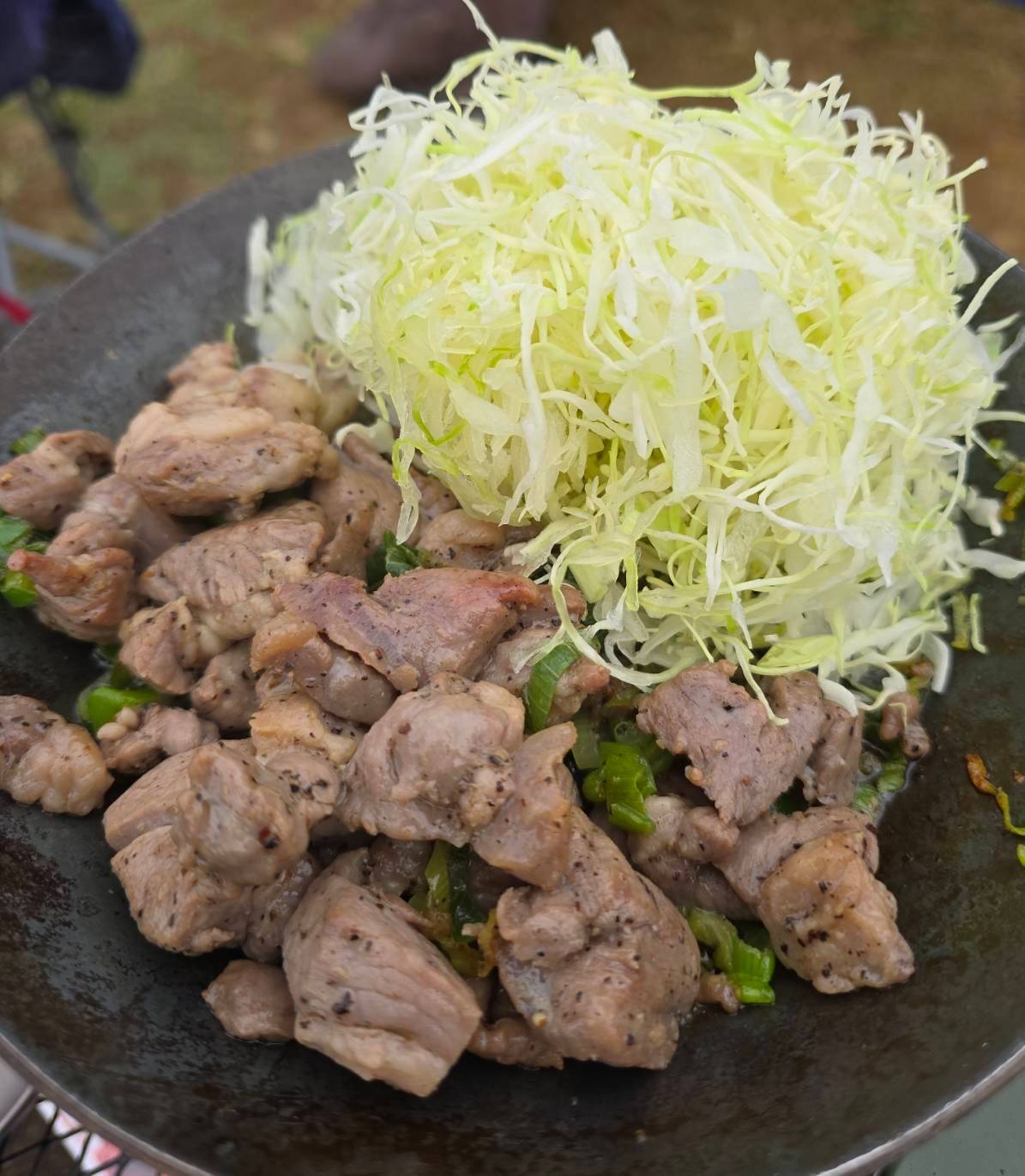 【本日の乾杯】今年度も冬キャンプスタート。スーパーにあった塩だれのラム。鉄のフライパンで葱と共に焼いて、最後キャベツの千切りを添える。バカ美味いとはこのこと、ってくらい美味しかった。次回もこりゃマストだな。