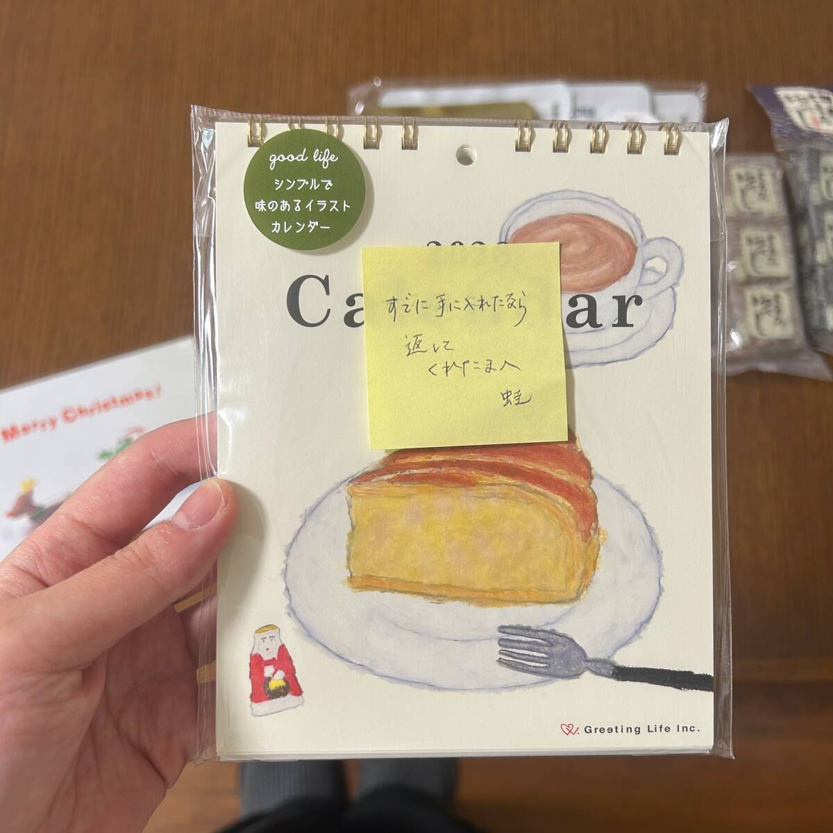 実家の両親からの宅配便。母からはおいしいレトルトカレーセット、父からは来年のカレンダーが。二人とも毎年同じものを買うので、先に見つけた方が知らせ合うルール。