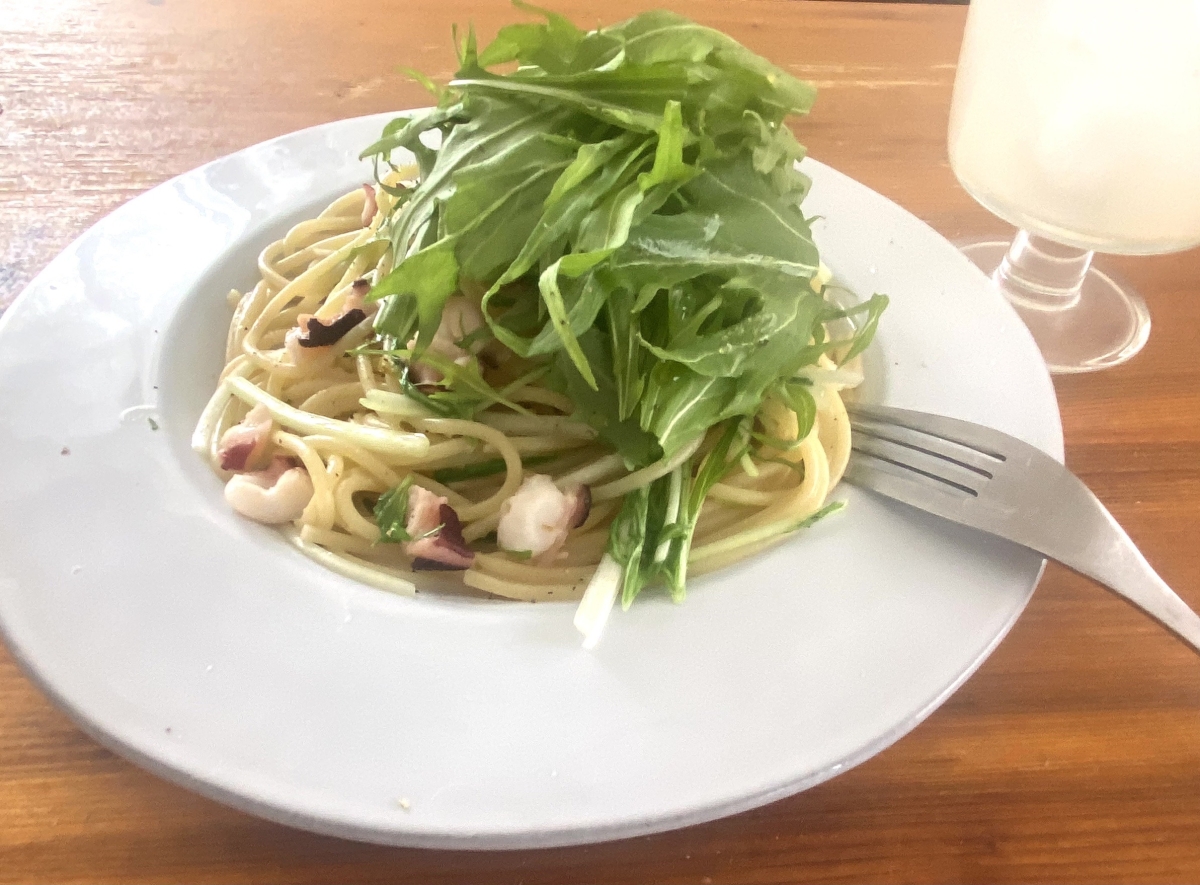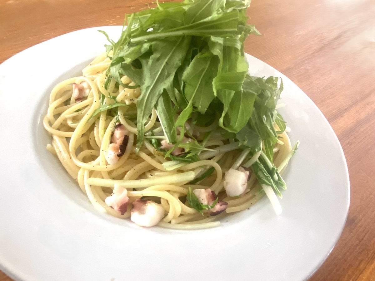 水菜とタコの柚子胡椒ペペロンチーノの作り方