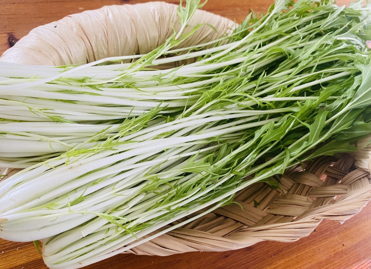 寒い季節ほど甘みが増して、葉のシャキシャキとした食感を楽しめる水菜。クセのない味わいで、サラダから鍋まで出番の多い緑黄色野菜です。栄養面も優秀で、ビタミンA(β-カロテン)、ビタミンC、カルシウム、鉄分が豊富。この時期、積極的に取り入れたい旬の野菜です。