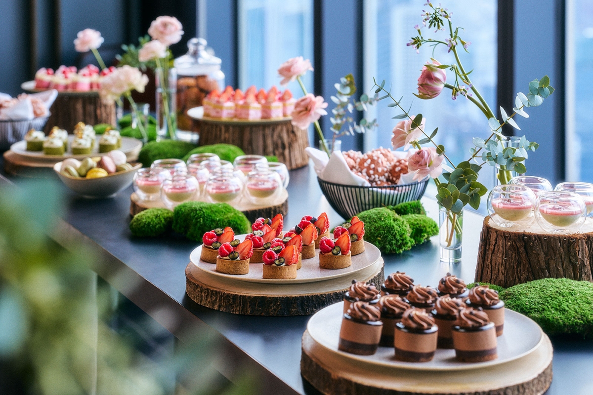締めくくりは、自家製いちご桜ショートケーキや自家製ベリーのタルト、桃のパンナコッタなど、季節を映したスイーツビュッフェ。淡い色合いと繊細な甘さが並ぶテーブルは、それだけで心がほどけるよう。ついつい手が伸びてしまう一品が、会話の合間に笑顔を運び、気づけば時間を忘れてしまうほど。
