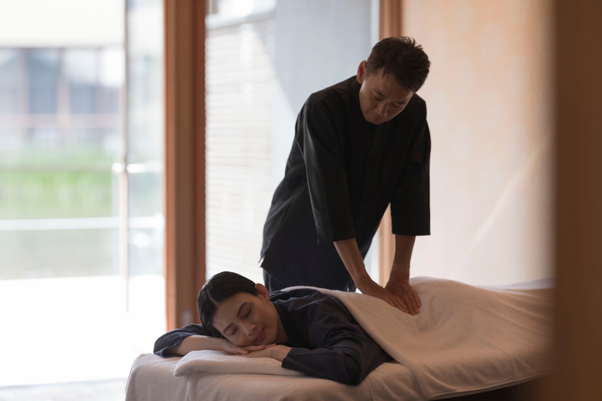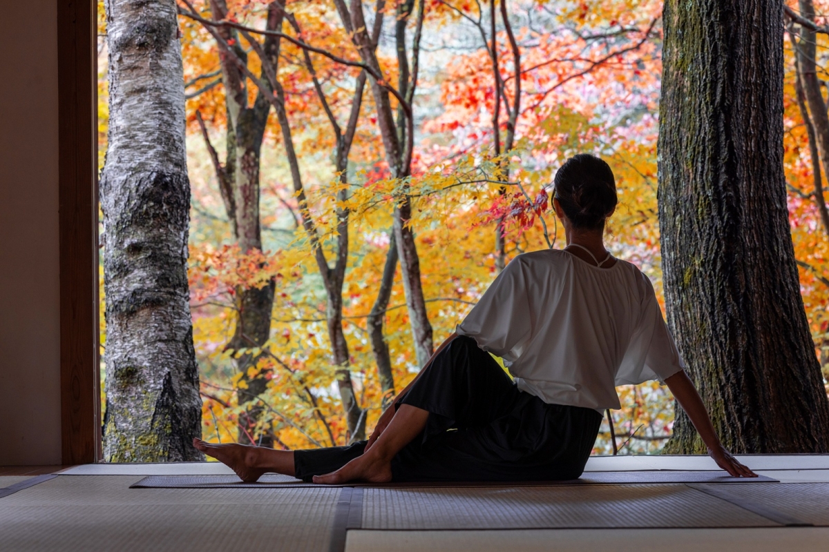 秋特有の寒暖差により現れる心身の不調に寄り添ってくれるのが、医師監修のウェルネスプログラム「軽井沢 秋の健幸滞在」。庭師と共に敷地内をめぐり、紅葉の彩りに意識を向ける「谷の秋色巡り」や、落ち葉を並べて感性を整える「紅葉まんだら並べ」。散策の後には状態に合わせて施術してくれる「鍼灸ボディケア」や「深呼吸入浴法」で身体の奥から巡りを促される、良質な睡眠へと誘います。