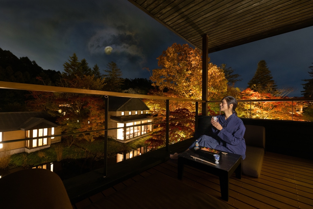 2つのプログラムと共に体験したいのが、感性も磨き整えてくれる「軽井沢 秋月の宴2025」。月の満ち欠けと共にかわる6つの月見席から、その日限りの最高の月を楽しめるよう用意された宴は、情緒があって優雅な時間を約束。