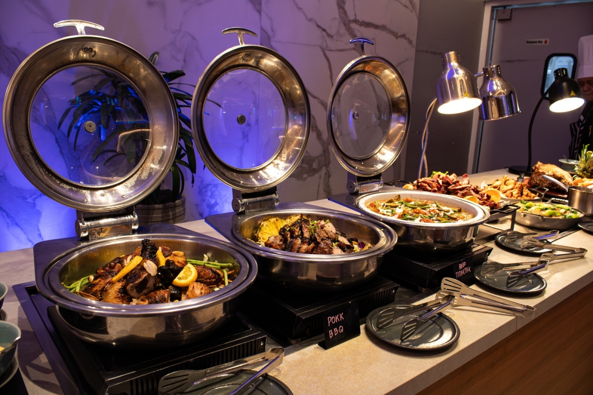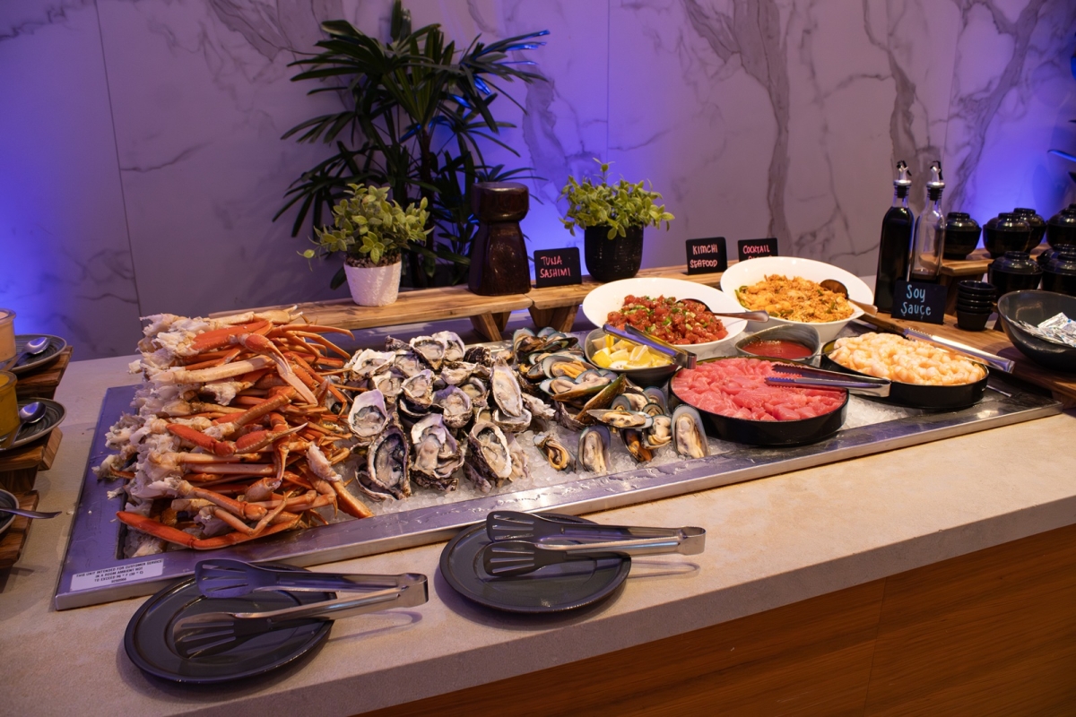 地産の食材をふんだんに使った多彩な料理が並び、ライブカービングステーションにはいつも人だかりができるほど。好きなものを好きなだけいただけるというスタイルもまた、好みが異なる旅のメンバーそれぞれに満足感をもたらしてくれる。
