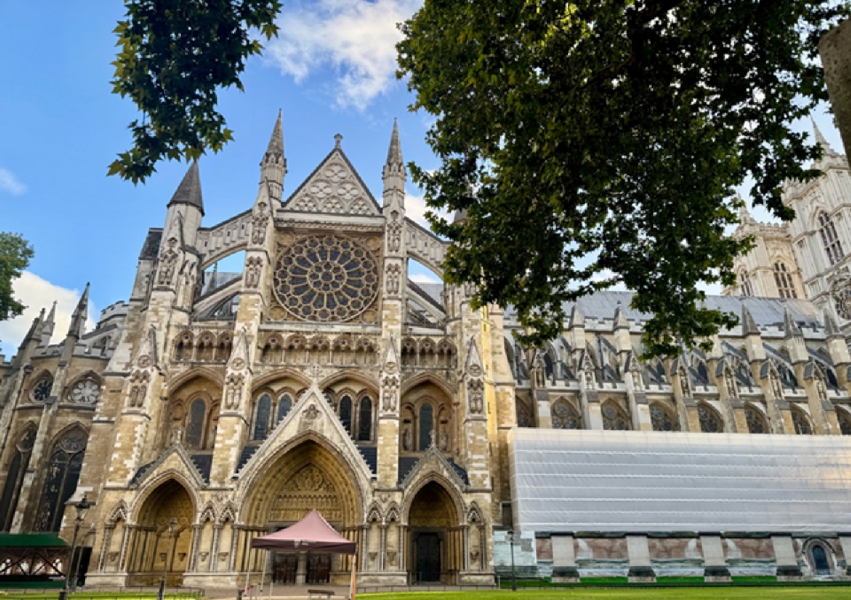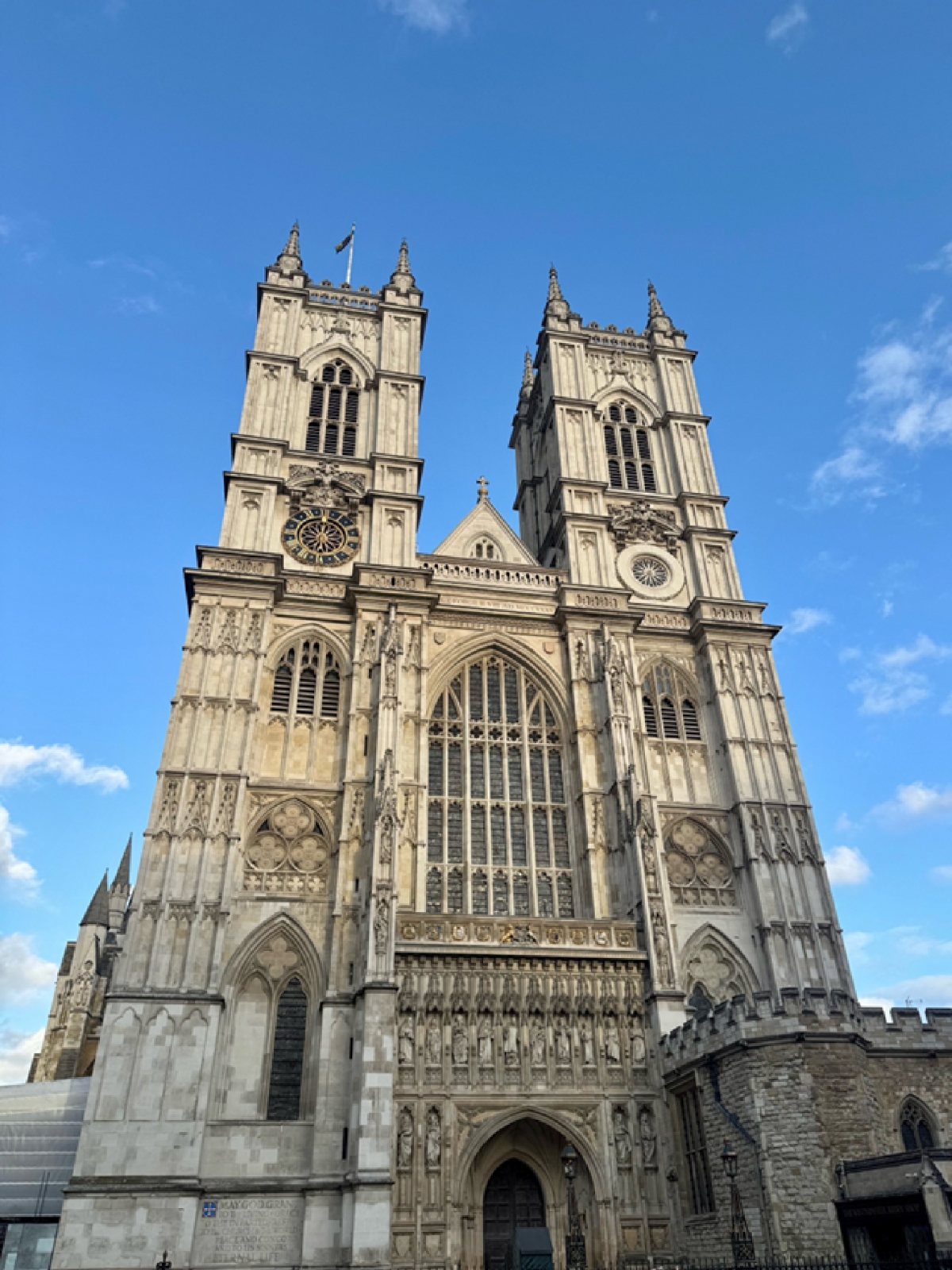 近くにはウェストミンスターアビーが。こちらでは1066年以降、ウィリアム1世から現在チャールズ3世までほとんどの国王の戴冠式が行われてきました。フランスのゴシック様式も取り入れられ、まさにパリのノートルダム大聖堂のような壮麗さが感じられます。