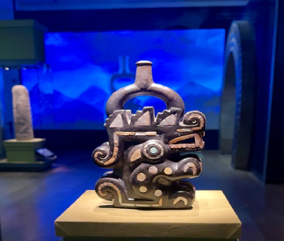 他にも、仲間のトカゲと犬を従え、ハゲワシの背に乗るアイ・アパエックを表す陶器があり、どこか日本の「桃太郎」を連想させるフォーメーションに親近感が湧きました。