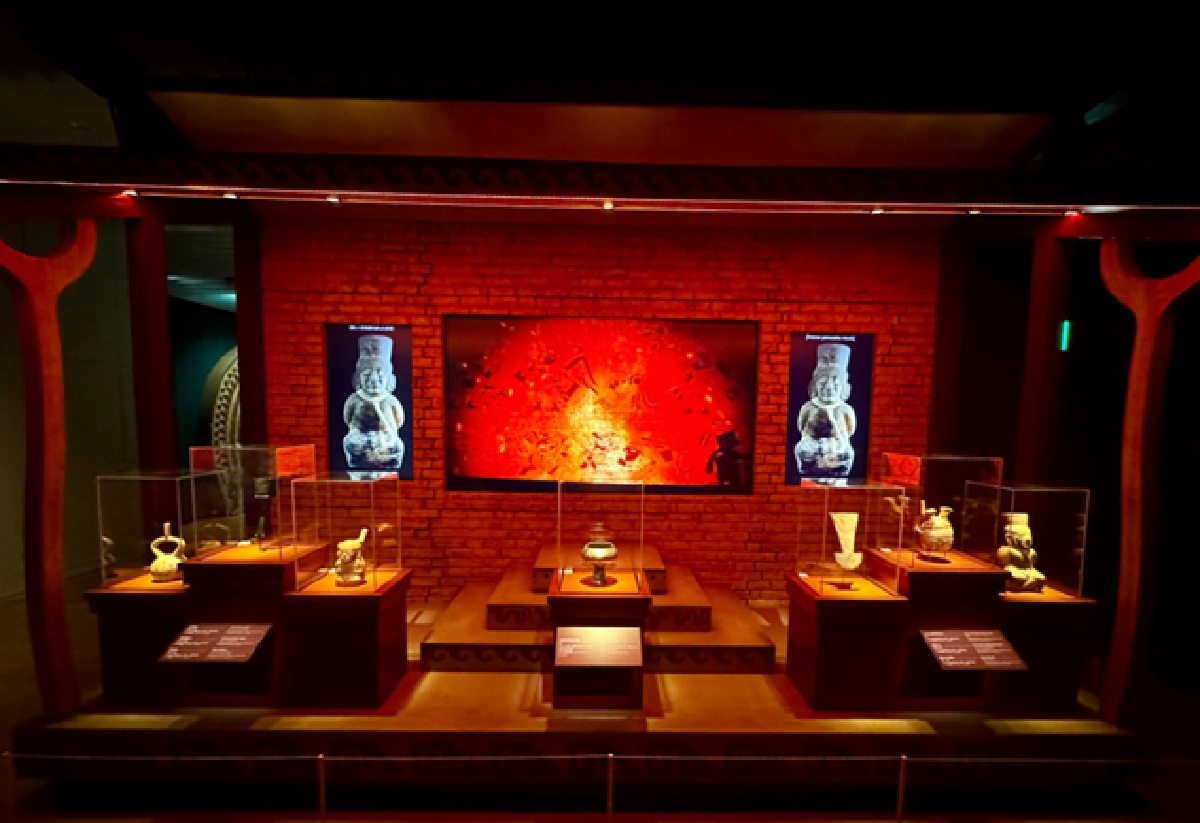 儀式に使われた祭具や装飾品が並び、当時の精神文化や信仰の深さを体感できる構成になっていて、神話と現実が交差する静謐で神秘的な空間。@MUSEO LARCO KIMA-PERU