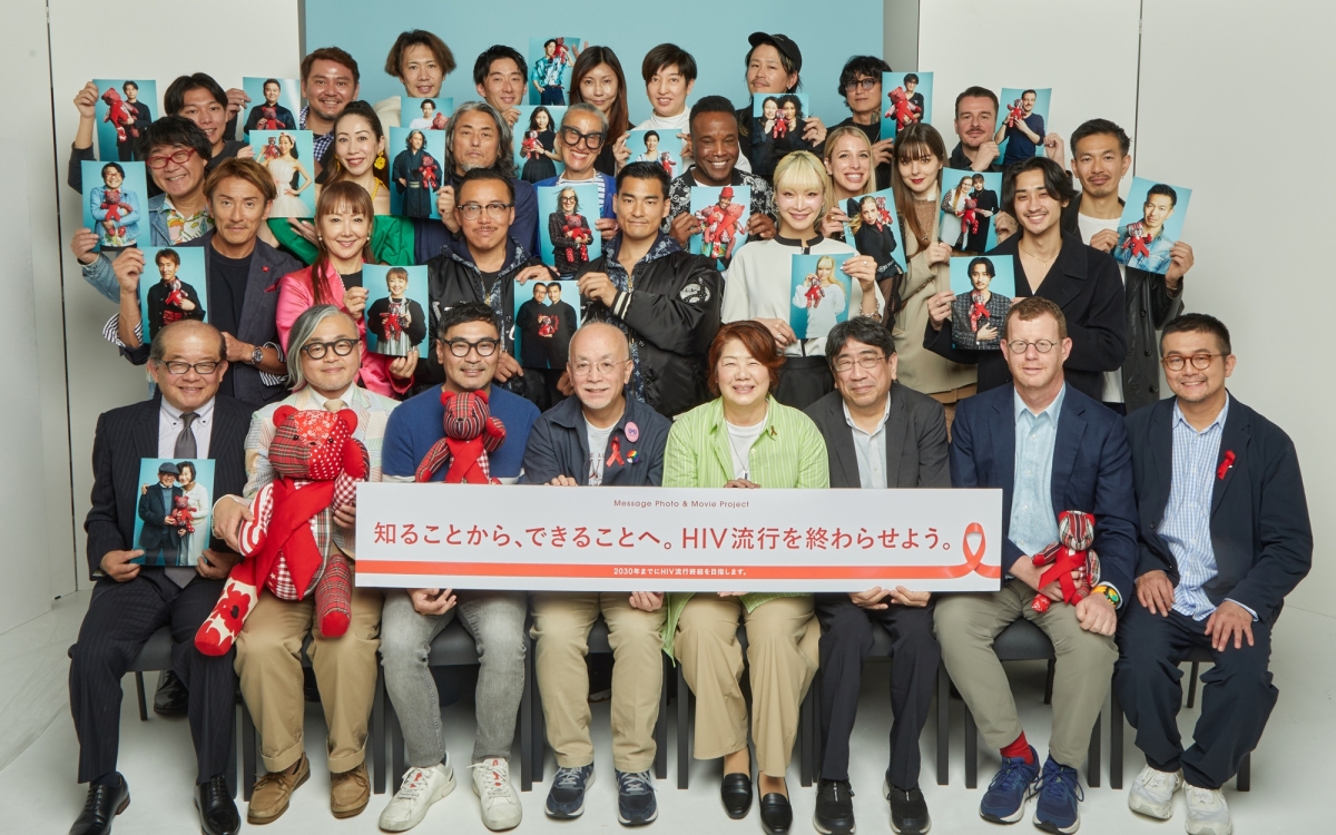プロジェクトのメインとなるのが、120名にもおよぶ参加者たちがHIV流行終結に向けたメッセージを発信する「Message Photo & Music Video」。NPOや支援団体、医療・教育現場、エンタメ業界など、セクターを超えて多様な人々が参加し、"赤いリボン"を手にしたポートレートとともに共感を呼び起こしていく。