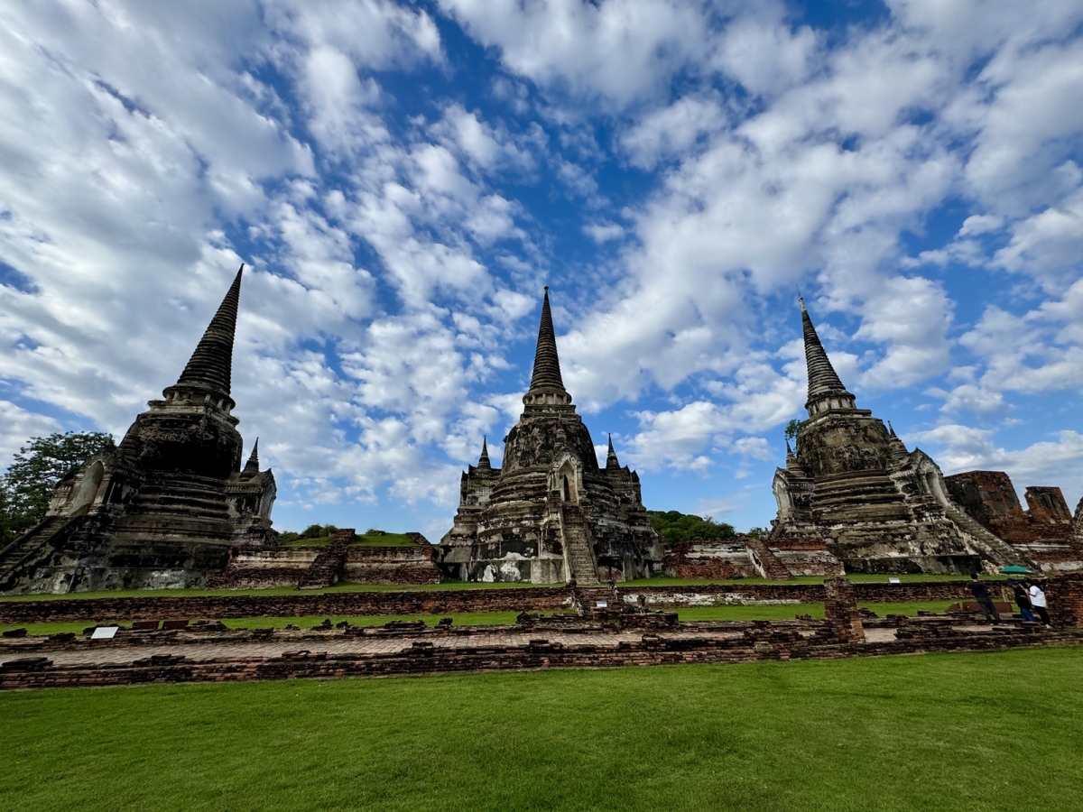 こちらの一直線に並ぶ3基のスリランカ様式のチェディ(仏塔)にはアユタヤ王、王子の遺骨が納められ、この壮観な佇まいから観光スポットとなっています。こちらの寺院はかつて王室専用寺院とされていてアユタヤ朝時代を象徴する格式の高い寺院として知られています。3つの仏塔で‟サン”ペット。覚えやすいですよね!
