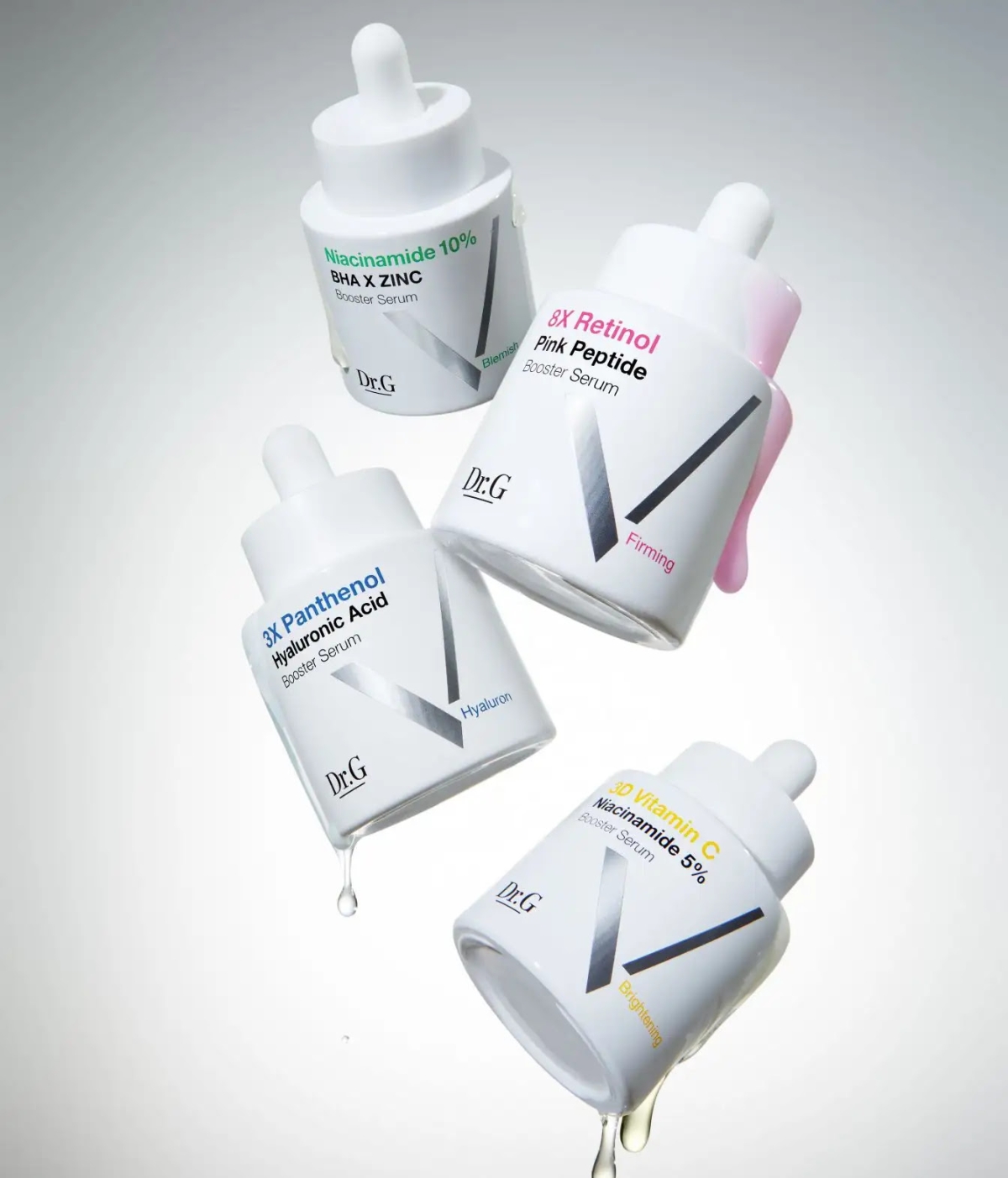 Dr.Gの「ビタブーストセラム」は、肌悩みに合わせて選べる4種のビタミン(A・B3・B5・C)を配合。異なる肌悩みにアプローチし、乾燥、くすみ、ハリ不足、肌荒れなど、ドクターズコスメならではの処方でアプローチ。独自成分「V-BOOSTER(ブイブースター)」がビタミンの働きを高めながら集中ケア。