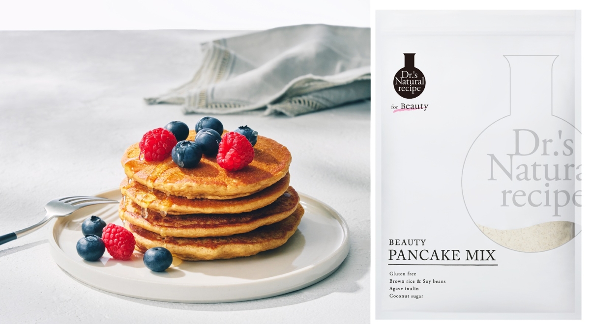 もうひとつがインナーケア発想の「パンケーキミックス」。玄米粉と大豆粉を独自ブレンドしていて糖質45%カット※1。低GIで血糖値の急上昇を抑えつつ、食物繊維・たんぱく質・鉄・マグネシウム・カルシウムなど、美容と代謝に嬉しい栄養素がぎゅっと凝縮。白砂糖の代わりに低GIのココナッツシュガーを採用。こだわりの設計でスイーツパンケーキはもちろん、生ハムや野菜と合わせてガレット風にしたり、スコーンやベーグル、パン作りも可能。