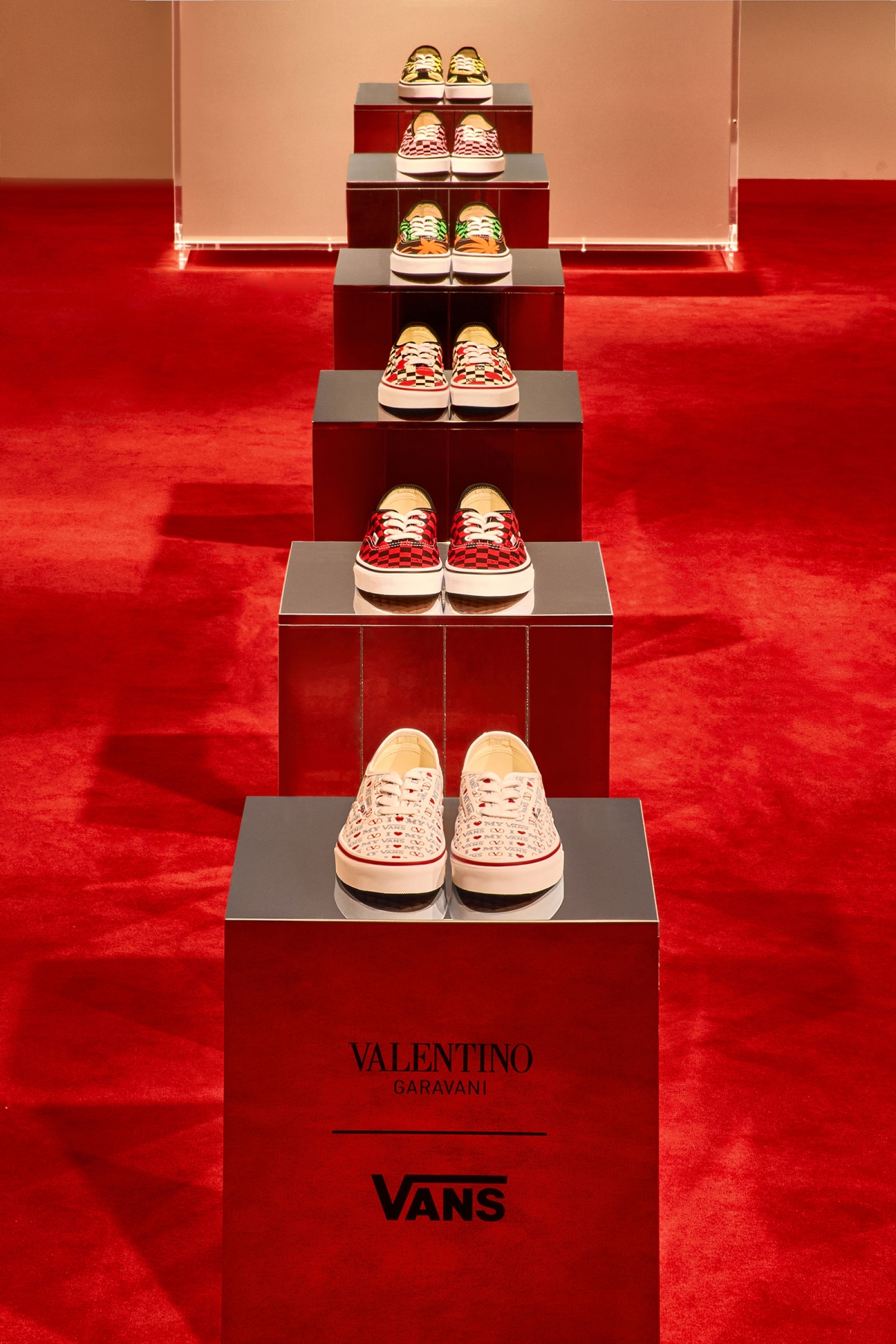 なかでも注目は、ヴァレンティノのVロゴとヴァンズのチェッカーボードをミックスしたデザイン。キャンバス素材やワッフルソールなど、Vansらしさはそのままに、6種類の柄でラインナップ。また、ヴァレンティノの“ル シャ デ ラ メゾン”プリントは、猫好きにも刺さる遊び心満点のデザインに。さらに、両ブランドのロゴが刻まれたインソールや、特別仕様のパッケージも、テンションを上げてくれるポイントに。