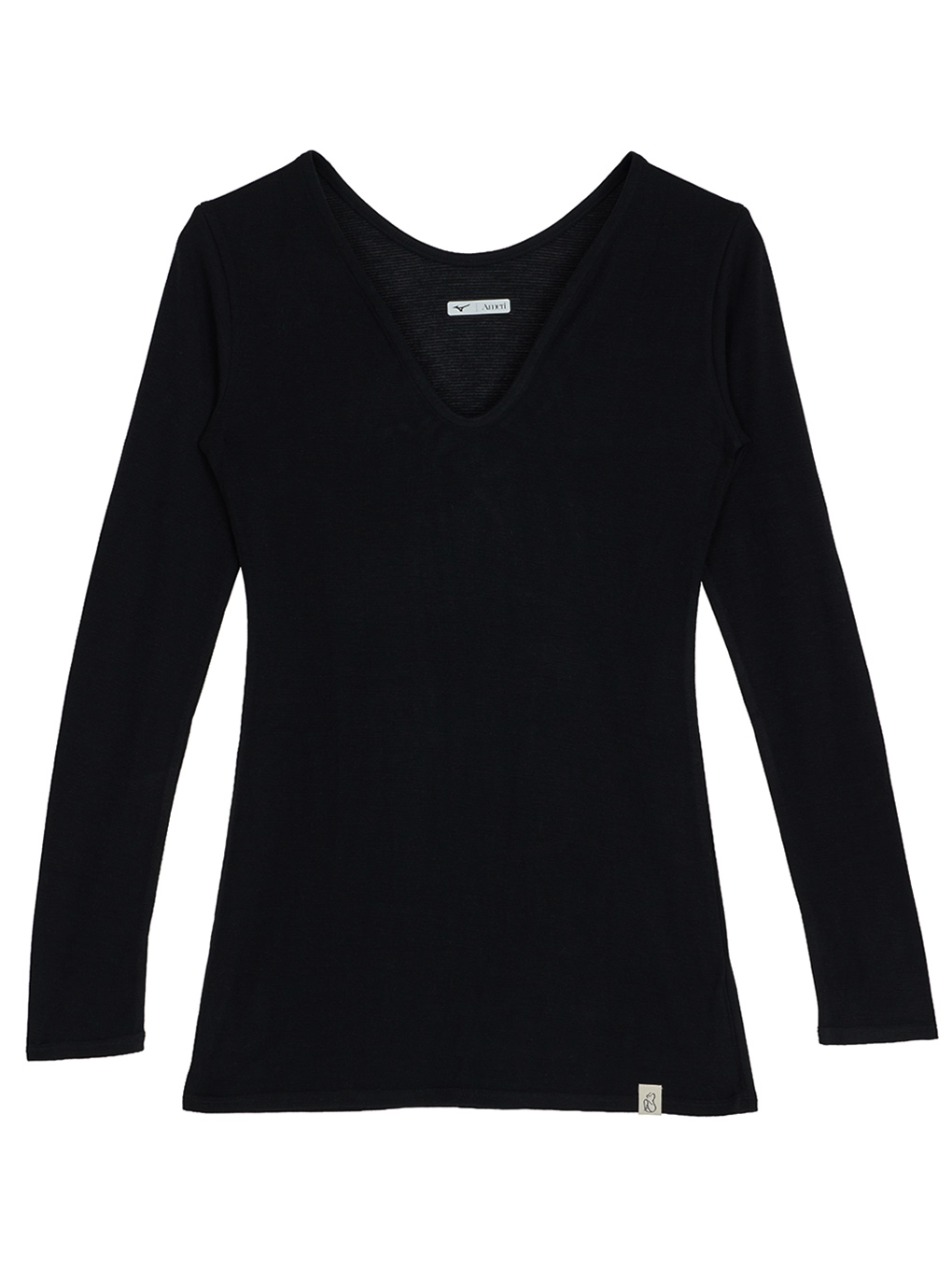 「Vネック ロングスリーブ」や「Vネック ノースリーブ」は、広めの襟ぐりと長めの着丈で、アウターのシルエットを邪魔せずヒップまで温かく包み込む設計。さらに、カップ付きで1枚でも着られる「シアードッキング」シリーズは、シアー素材とのレイヤードが美しく、バックオープンのトップスやドレスにも対応。袖口からの“のぞき見せ”も楽しめるデザインに。