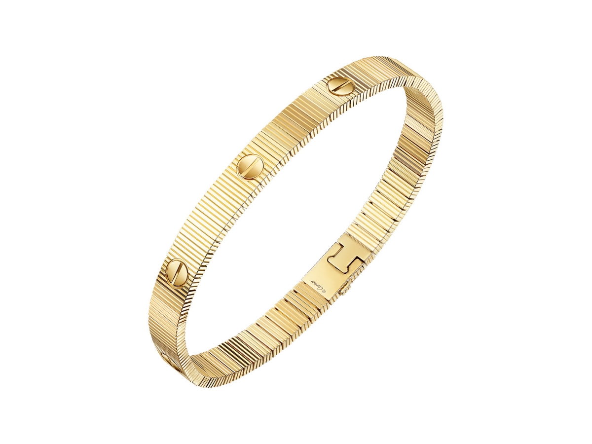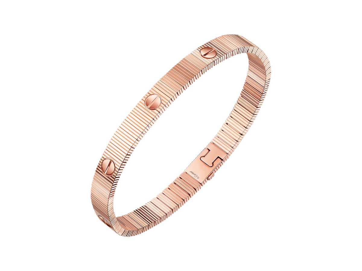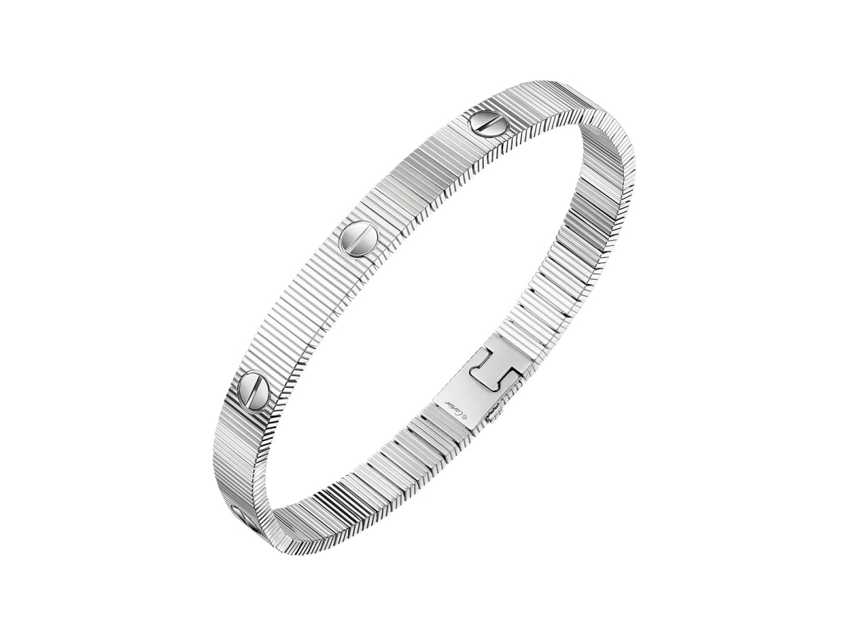 そんな「LOVE」コレクションに待望の新作が加わる。「LOVE アンリミテッド」ブレスレットは、人間工学に基づいてザデインされたというしなやかで美しいフォルムが特徴的。ゴドロン装飾のような複数のリンクがあしらわれ、そこに「LOVE」のアイコンともいえるビスを装飾。このデザインが醸し出す類まれなバランス、光の相乗効果はブレスレットに高貴な存在感をもたらす。