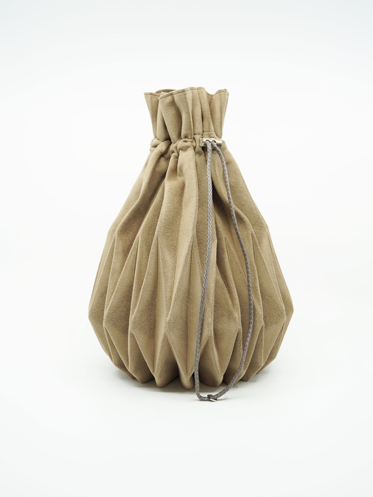 デビューコレクションのデリバリーを前に、「ビューティー&ユース」では別注アイテムがお目見え。アイコンモデル「KINCHACK」は、日本の伝統的な巾着袋をベースに、変形プリーツで立体感をプラス。黄金比を使ったパターン設計で、見た目もバランスもバツグン。デニムやスエードの素材が上品さを演出してくれて、カジュアルにもモードにもハマる万能アイテムに。