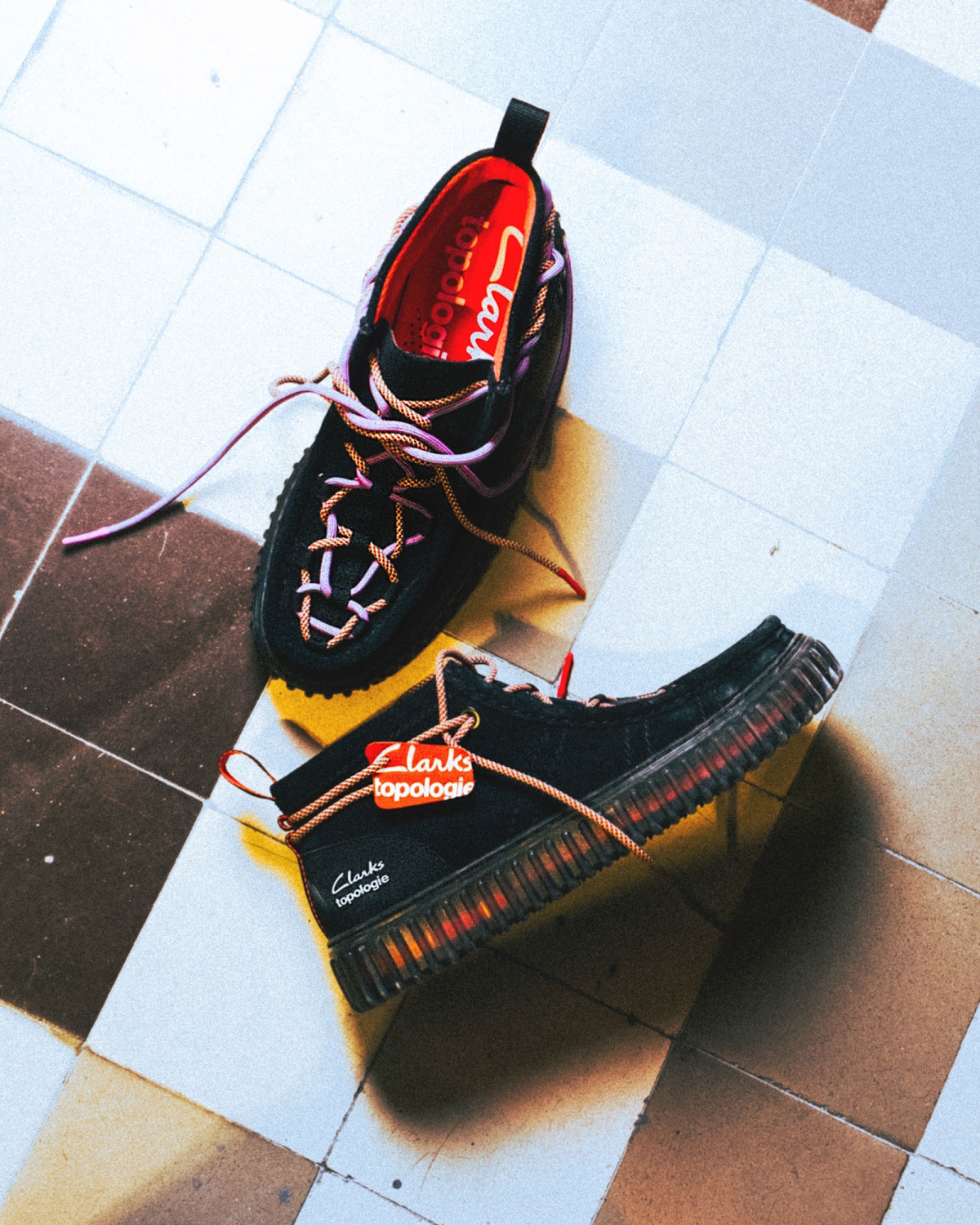 英国発の老舗シューズブランド「Clarks(クラークス)」は、200年にわたってクラフトマンシップと革新性を融合させ、快適さと普遍的なスタイルを追求し続けてきた。一方、2018年に誕生した「Topologie(トポロジー)」は、フランスと日本のクライミングカルチャーを背景に、機能美と洗練されたデザインを兼ね備えたプロダクトを展開。そんな両者が手を組み、コラボレーションモデル「Torhill Hi(トーヒル ハイ)」が誕生。