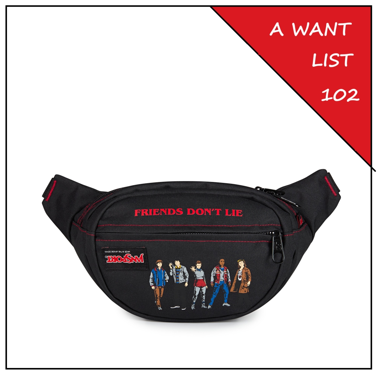 今回のコレクションは、作品の象徴的なモチーフやセリフをデザインに落とし込んだ特別仕様。注目のウエストポーチには、仲間との絆を象徴するフレーズ“FRIENDS DON’T LIE(友達はウソをつかない)”を大胆にプリントし、シリーズを通して描かれてきた友情と信頼のテーマがバッグに込められている。長さ調整可能なストラップで、ウエストポーチにもボディバッグにもなる2way仕様なので、利用シーンに合わせてアレンジできるのも嬉しいポイント。