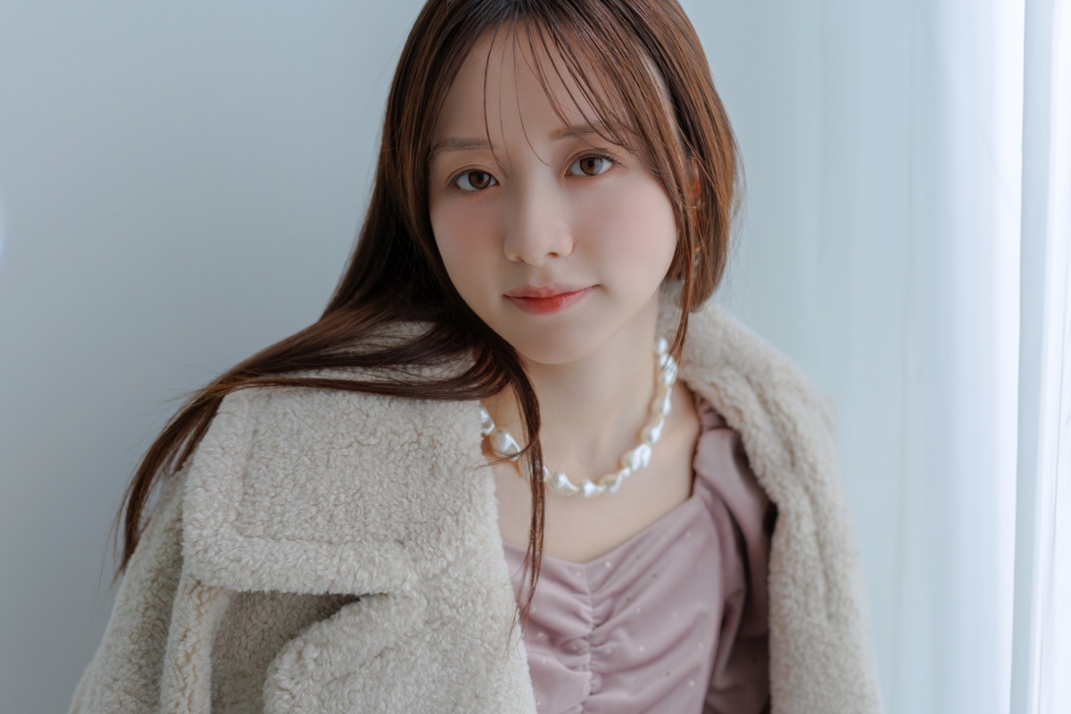 ベロア地に散りばめられたきらきら光るドットのあしらいも、上品な華やかさの秘密。肌色をよりキレイに魅せてくれる絶妙な色合いのピンクは、ここぞというシーンの強い味方に。薄いベージュカラーのショート丈ボアコートと合わせて、癒やし系カラーリングを楽しんで。