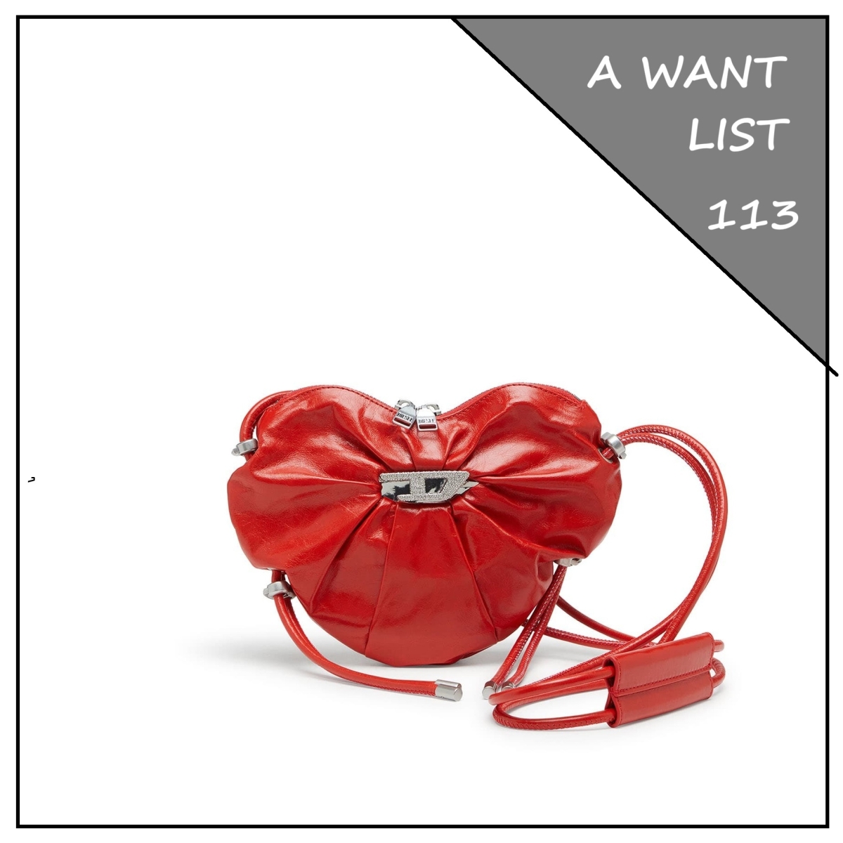 ディーゼルがこの冬リリースしたのは、思わず「かわいい!」と声が出てしまうハート型ショルダーバッグ。中央のロゴプレートと、くしゅっと寄せたスクランチディテールがほどよく個性をプラスしていて、甘すぎないのがポイント。