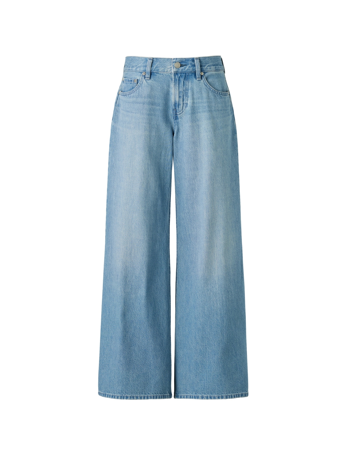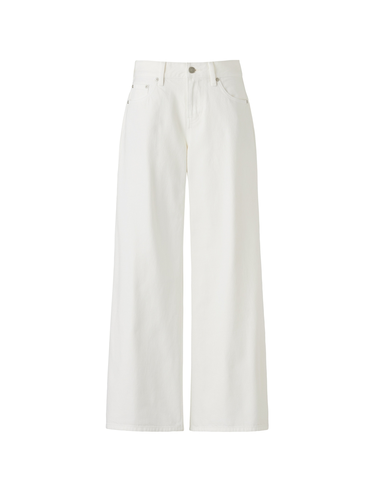 ローライズのワイドシルエットは、見た目以上にゆとりのあるシルエット。ローウエストのヒップから広がるワイドフレアーは、脚が長く見えるだけでなく、はき心地も快適だ。