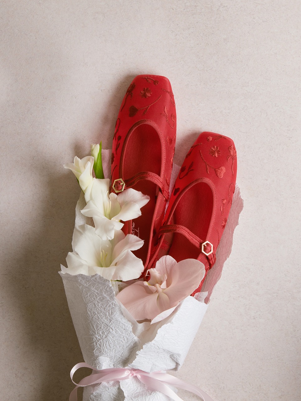 そして、見た目の繊細さとは裏腹に、履き心地は驚くほど軽い。ビバイアならではの“雲の上を歩くような”インソールが、一日中快適な歩行を叶えてくれる。また、購入すると、シューズとリンクした赤い刺繍が目を奪う限定シュシュももらえるそう。このモデルは、世界限定500足で、日本では常設店舗限定で発売予定。スタイルにバレンタインの彩りを添えてくれる一足、ぜひチェックして♡