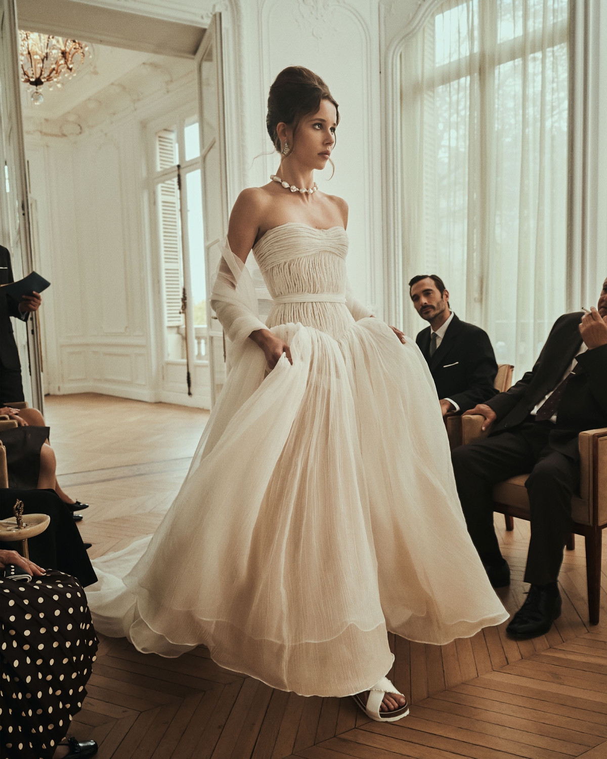 いずれのモデルにも、ブランドの原点であるコルクラテックス製フットベッドが採用され、花嫁の足を心地よくやさしく包み込んでくれるので、ヴァージンロードも自分らしくウォーキングできそう。そこにダニエル・フランケルならではのオートクチュールの技法が用いられ、洗練されたブライダルコードが吹き込まれたことで、ご覧のとおりとってもロマンティックなフットウェアに!