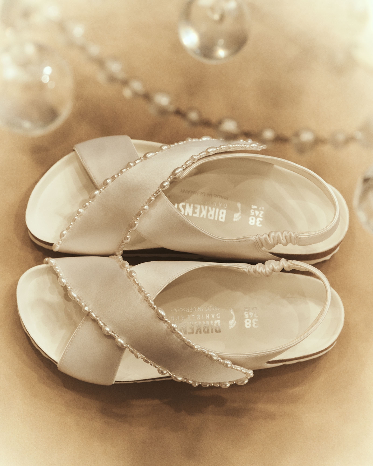 ブランドのタイムレスなデザインアプローチを再解釈した、モダンでスペシャル感が満載のシューズはビルケンシュトックのクラシックモデル4型、Danielle Frankel限定のカスタムスタイル2型を含む、全6型のカプセルコレクションとして展開される。ブライダルコレクションを想起させる艶やかなファブリック、上質な素材、そして洗練されたディテールは、白いドレススタイルの華やかかつ極上のおしゃれエッセンスになること確実。