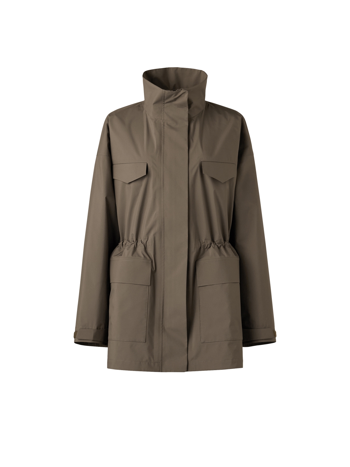 フロントを上まで閉じて衿を立てたり、オープン気味にしてラフに装ったり。ウエストをしぼったり、サイドファスナーでシルエットの変化を楽しめたり。——アレンジを効かせて、自分らしい着こなしができるのも魅力。