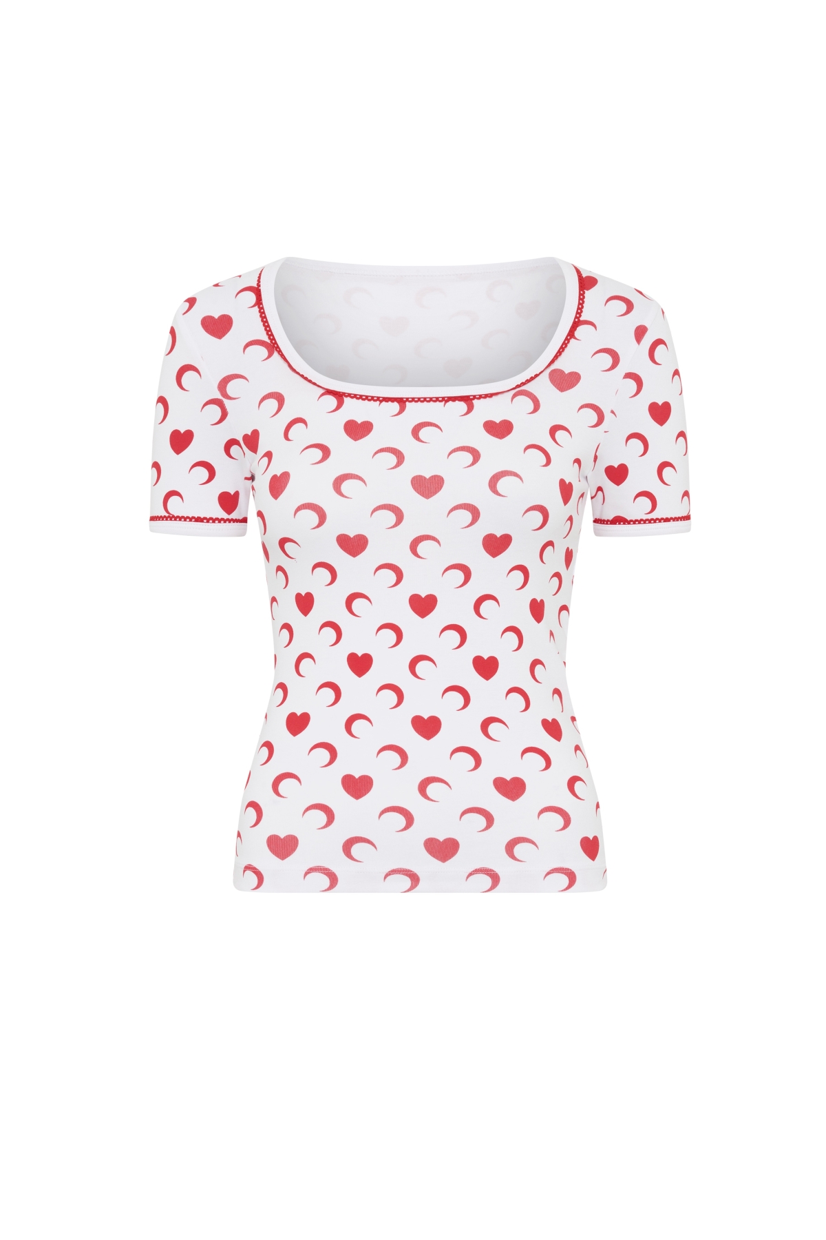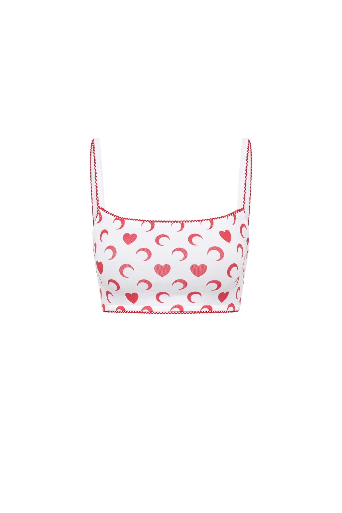 2026年バレンタインカプセルコレクションには、ブランドの象徴「All Over Moon」をまとったアイテムがラインナップ。メインは、マリーン セルのムーンパターンをより親密でロマンティックに再解釈した、白地に赤いハートと三日月が並ぶデザイン。アイテムをかたどるように施された赤いラインは、ラブレターの縁飾りのような可憐さを添える。ハートとムーンが共存するパターンが、スタイルのアクセントになること間違いナシ!
