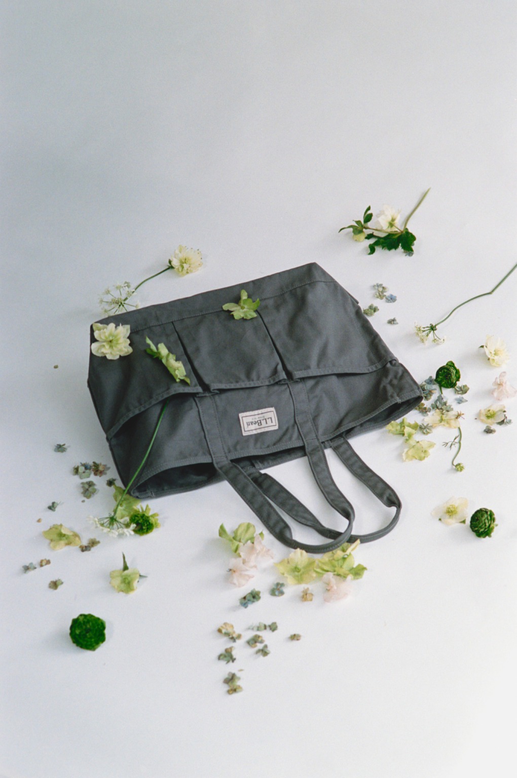 最大の魅力は、外側に6つ、内側に1つの計7つのポケットを備えた圧倒的な収納力。細かい荷物が多い日や、キャンプ・公園遊び・買い出しなど、どんなシーンでも大活躍。また、11オンスのコットン生地はタフなのに軽く、肩掛けできるハンドル幅も嬉しいポイント。