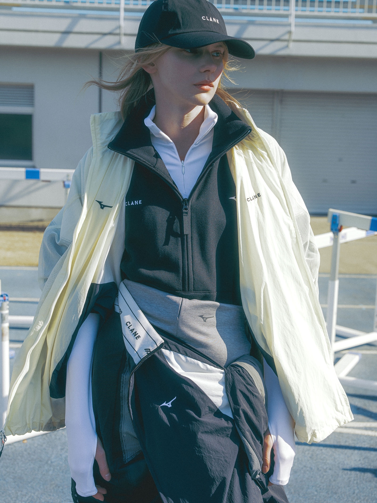 今回のコレクションは、ジャケットやトラックアイテム、アクティブウエア、アクセサリーまで全12アイテムという充実ぶり。運動のためだけじゃなく、普段のコーデにも自然に馴染むようにデザインされているのがポイント。ミズノのテクノロジーをクラネらしい視点で再構築し、シルエットやディテールにこだわった“新しいアクティブスタイル”が楽しめる。