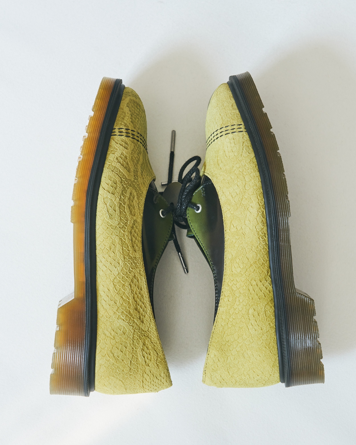 さらに、耐久性の高いレザーや丸みのあるトゥボックス、溝入りエアクッションソールなど、ドクターマーチンの定番ディテールはしっかり健在。クラシックさと新しさがちょうどいいバランスで混ざり合った、見逃せないコラボレーション!