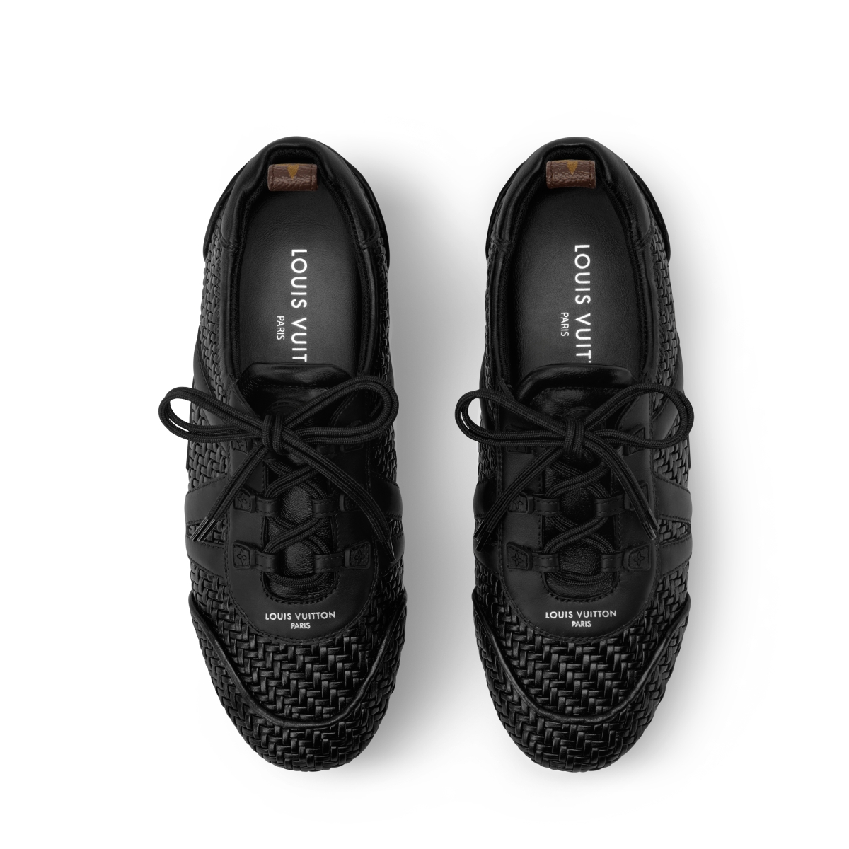そしてブレードラムレザーのLV スニーカリーナは、精緻に編み上げられたレザーがメゾンの卓越したクラフツマンシップを感じさせる一足。こちらもサイドに「LV」の二文字がレザーであしらわれ、フルラバーアウトソール、そしてモノグラム・キャンバスのバックループで仕上げられ、ラグジュアリー感満載。