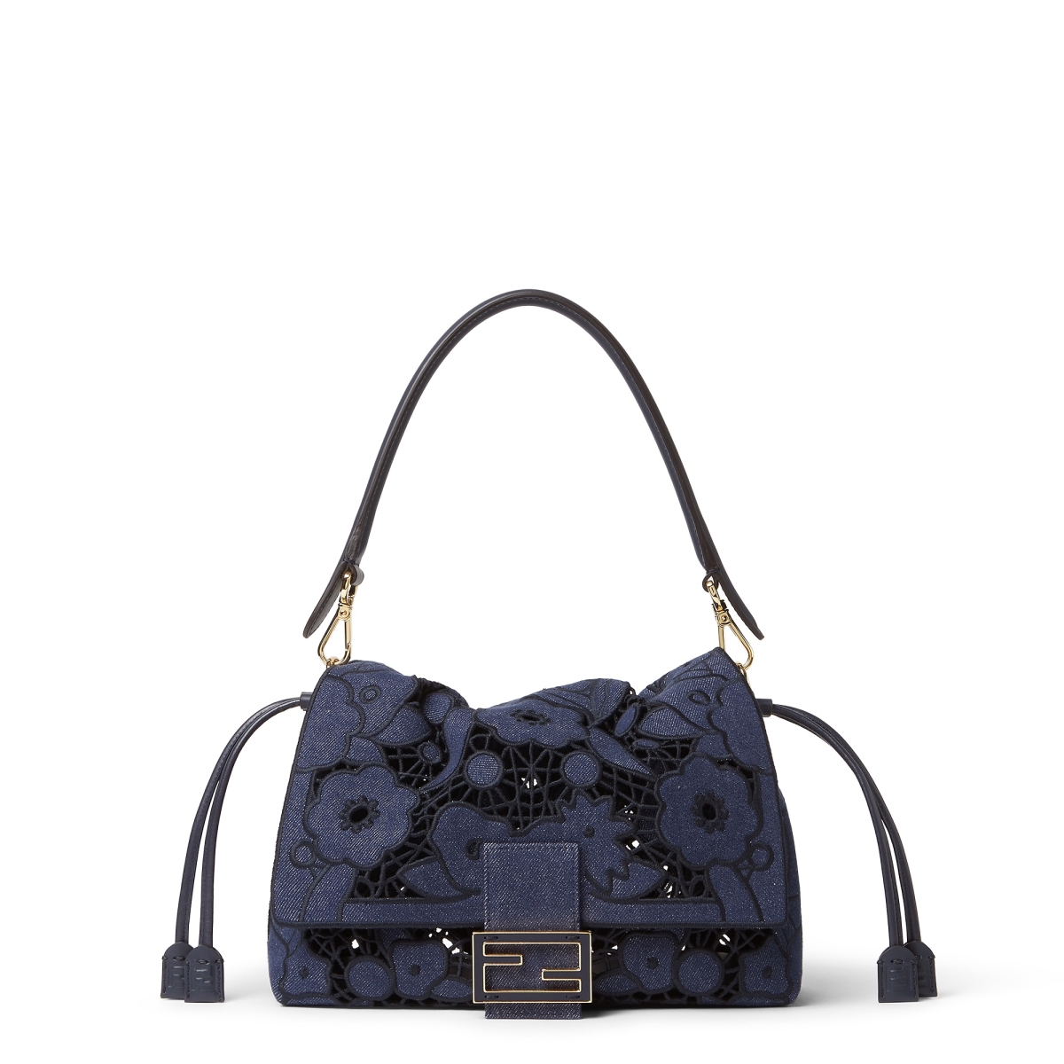 そして、フェンディのクラフツマンシップが際立つのが、フラワーモチーフのアジュールカットワークを全体に施した「マンマ バゲット」。繊細なカットワークがデニムのカジュアルさに上品なニュアンスを添え、普段のスタイルをぐっと華やかに引き上げてくれる。デニムバッグでありながら、ジュエリーのような存在感を放つ一品。