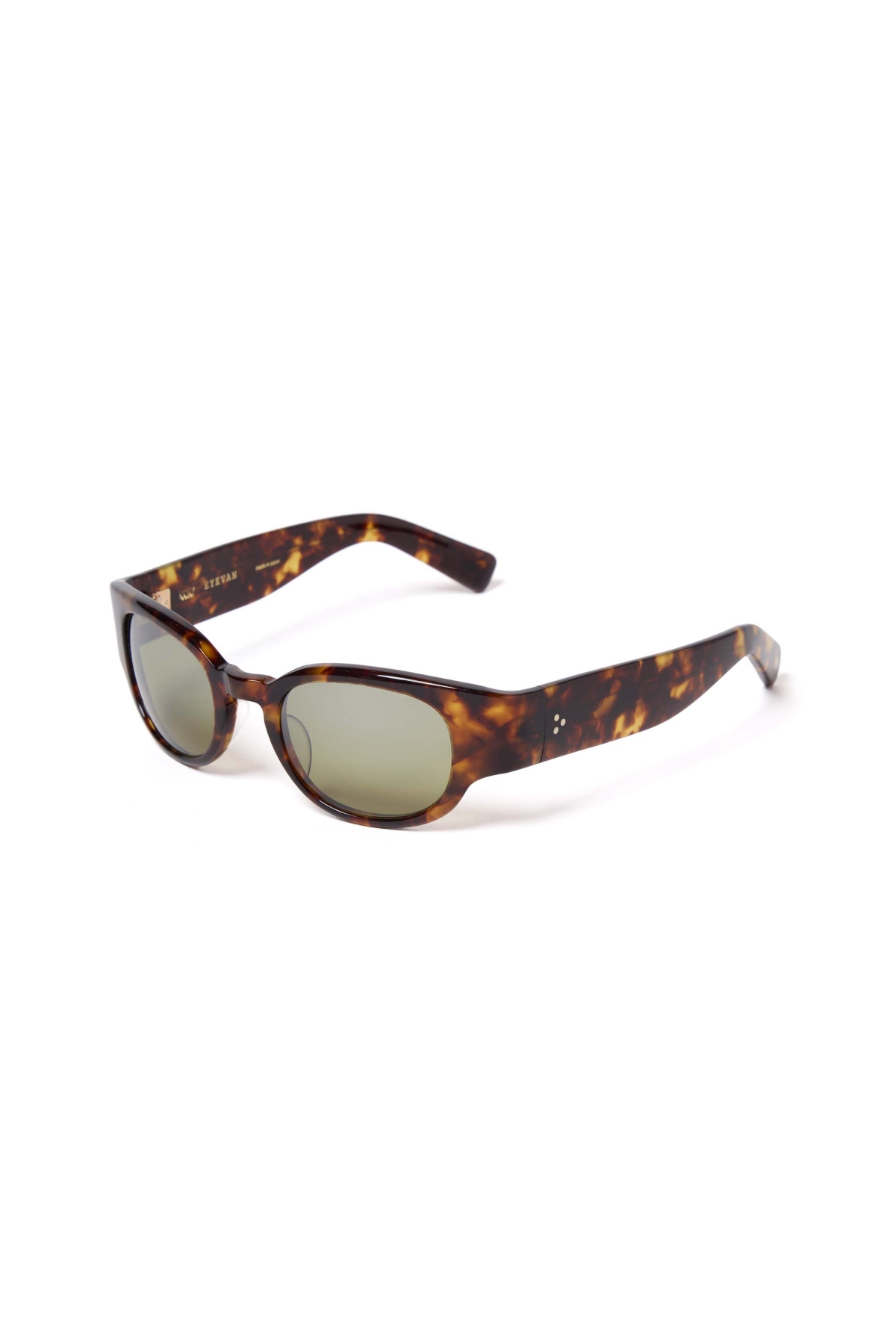 テンプルに入った3つのドットのディテールはアイヴァンらしい控えめなアクセント。カラーレンズもポイントで、重さのなかに軽さが混ざる感じが今っぽい。