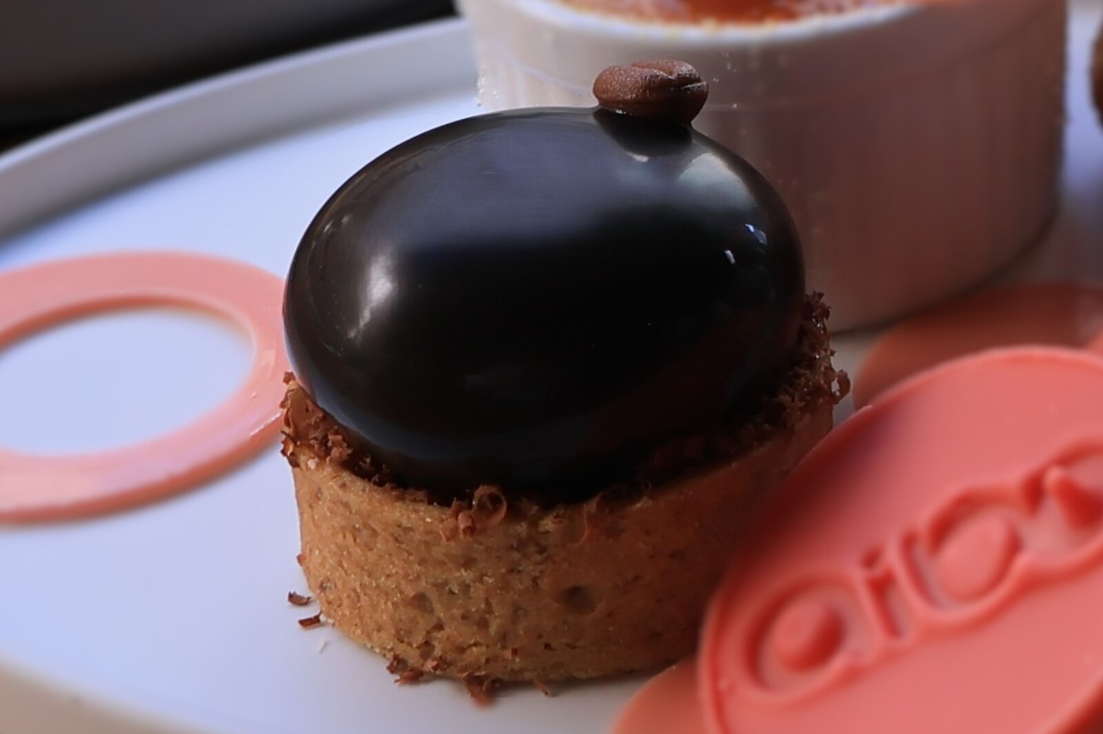ナッツの香ばしさとザクザク感が後を引く美味しさの「エスプレッソクリームとナッツのタルト」。ビターに仕上げた大人の味わいです。
