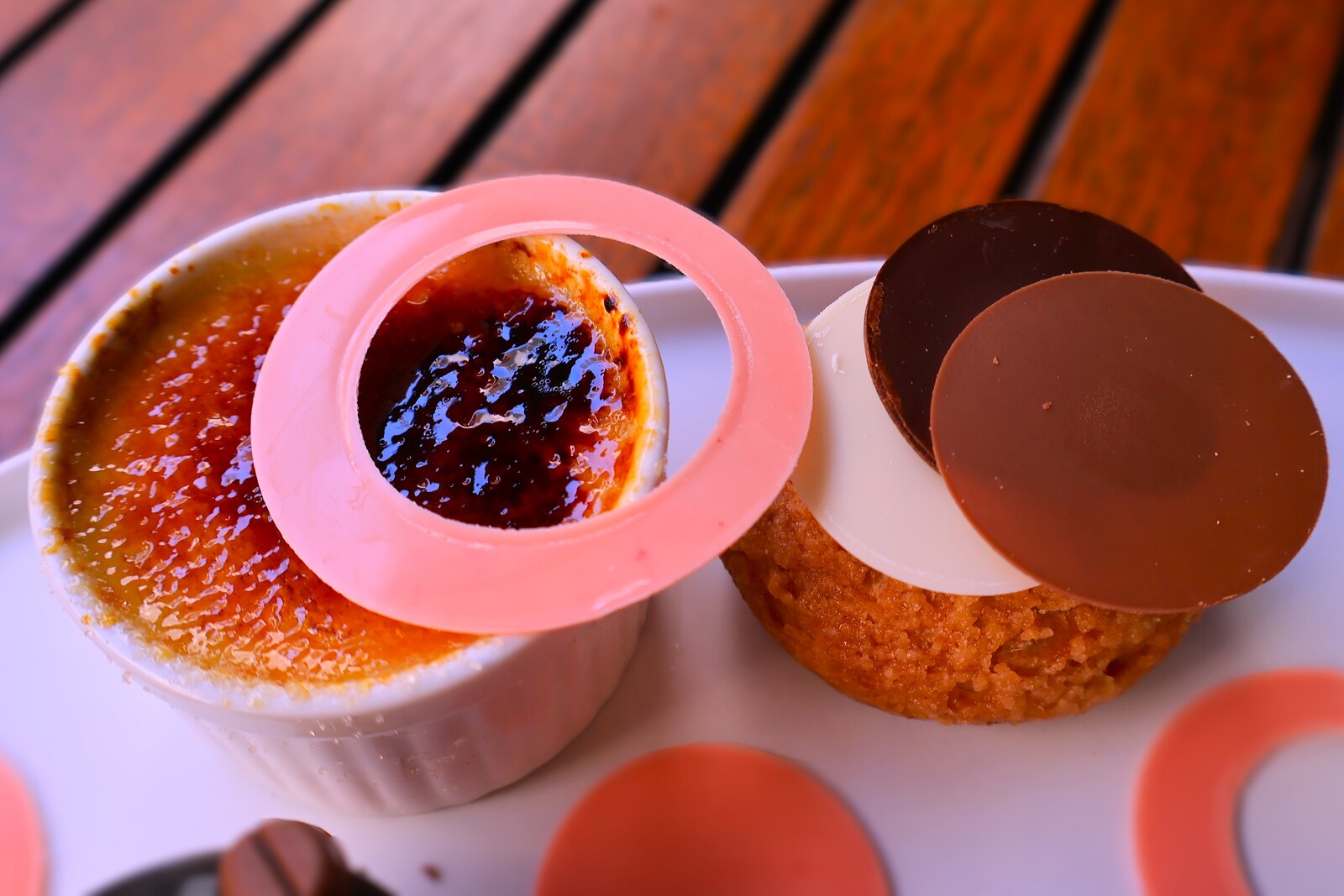 今回のコラボアフタヌーンティーでは、aiboのデザインテーマ“サークル”にインスパイアされた丸みのあるスイーツが多く登場! aiboの何とも言えない無邪気な可愛らしさをアフタヌーンティーで表現しています。