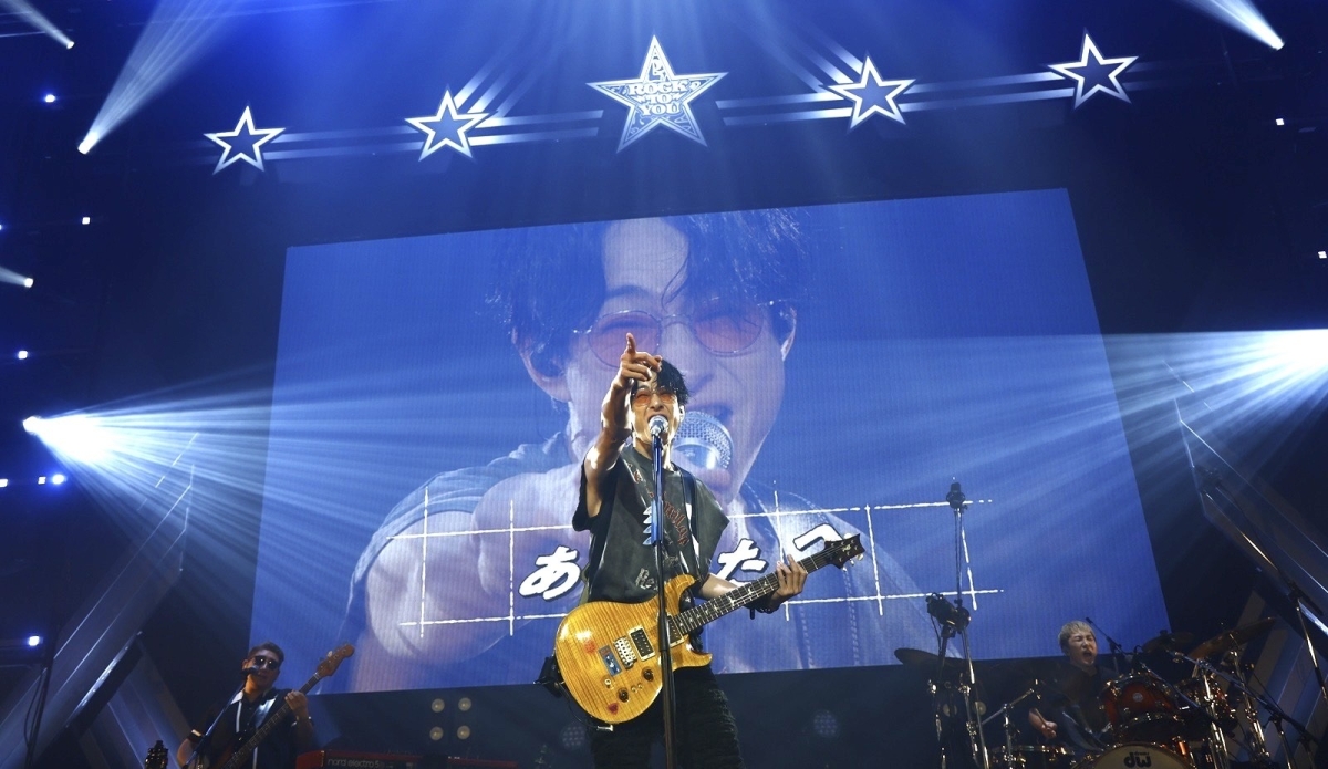 序盤から、音楽に身を任せて手を挙げ、歓声が鳴り止まない会場。そんな熱気を前に、横山さんも「最高にブチ上がってるじゃない?」と笑顔。改めて「横山裕です!40(歳)超えてギター始めちゃいました。ギター始めてロック目指してます!」と挨拶。そして、芸名の「横山“裕”(ゆう)の“YOU”」と本名「横山“侯”隆(キミタカ)の“キミ”」は、いずれも“あなた”を意味すると語り、「『ROCK TO YOU』。俺、あなたにロック届けに来ました」と力強く宣言した。