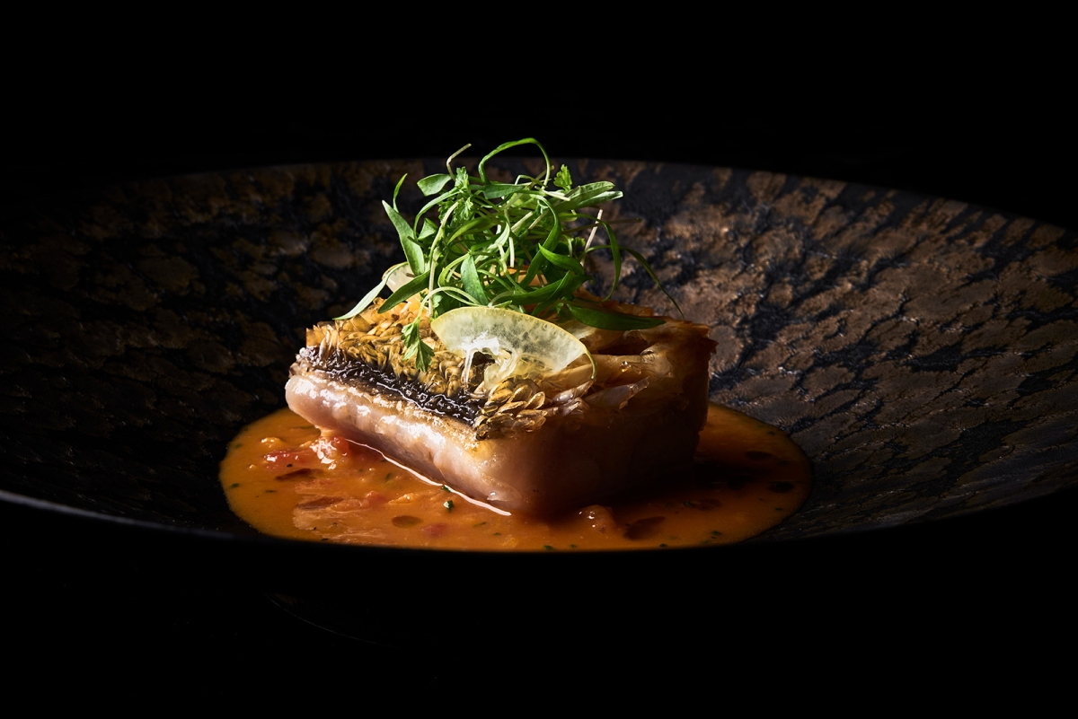 その季節に水揚げされた甘鯛のなかから、最も質の高い一尾を厳選。小林シェフの代表料理である“鱗焼き”は、鱗をあえて残したまま高温で火入れすることで、パリッと香ばしい食感とふっくらとした身の柔らかさがコントラストを生みだす。蛤やフュメ・ド・ポワソンなど魚介の旨みを重ねたソースが、甘鯛の繊細な味わいをさらに引き立て、ひと皿の中に海の恵みが凝縮されたような贅沢な一品。