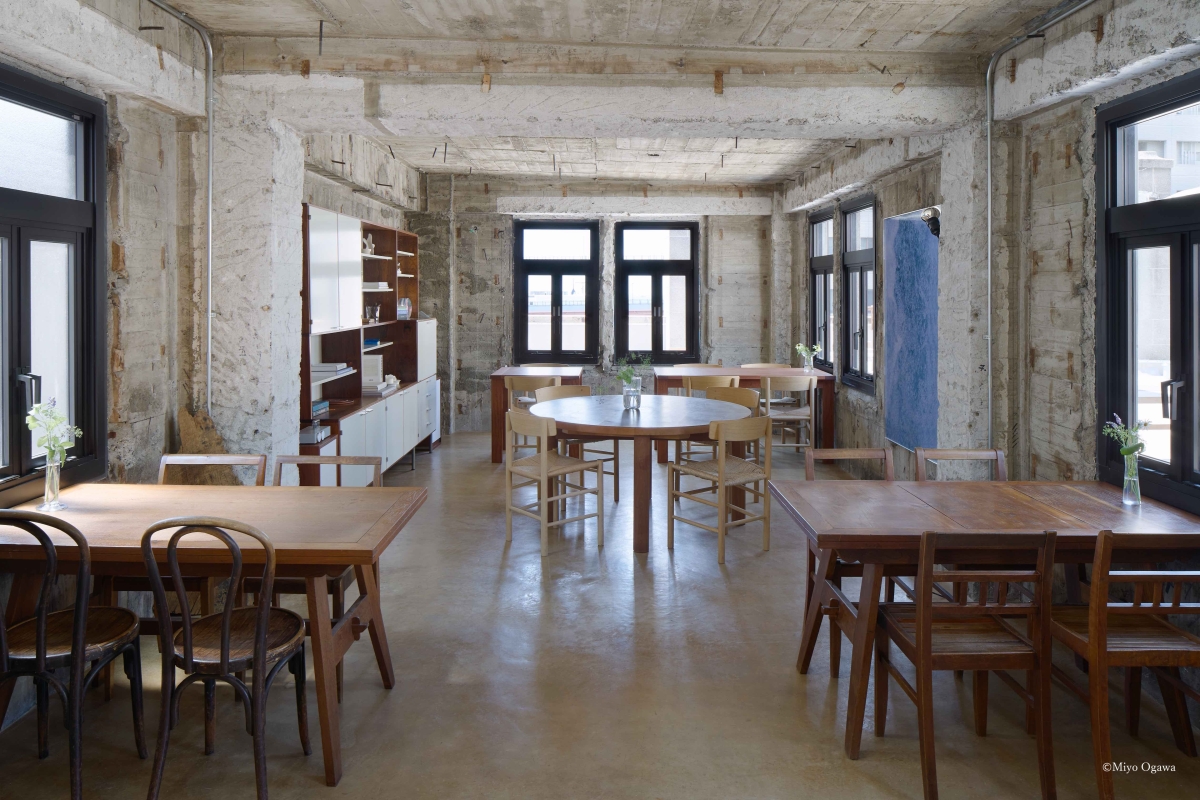 1938年竣工の元銀行を2年前にコンバージョンして誕生したのが「Vague Kobe(ヴァーグ コウベ)」。Teruhiro Yanagihara Studioのフランス・アルルに次ぐ日本の拠点として設立され、ギャラリー、ショップ、ショールーム、レストランなどが部屋ごとに配された複合空間だ。美しい円筒の柱で支えられた石造りの建物の4階とルーフトップの約1,000㎡を開放した空間は、いつ訪れても心地いい。ここはル・コルビュジエの建築的プロムナードの考え方のように採光や壁の色彩などを考え、歩きながら空間や時間の変化を感じられるように設計されているという。魅力的な展覧会やイベントも多く、ゆっくり時間をかけて過ごしたい。