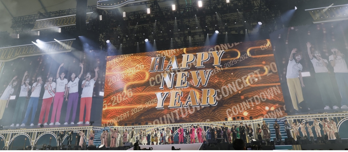22時30分、開演。各グループのライヴ映像をまとめたオープニング映像が流れ、2022-2023年以来、3年ぶりのカウントダウンコンサートに観客の期待が高まっていく。やがてモニターに全グループの名前が一斉に映し出されると、会場は割れんばかりの大歓声に包まれた。