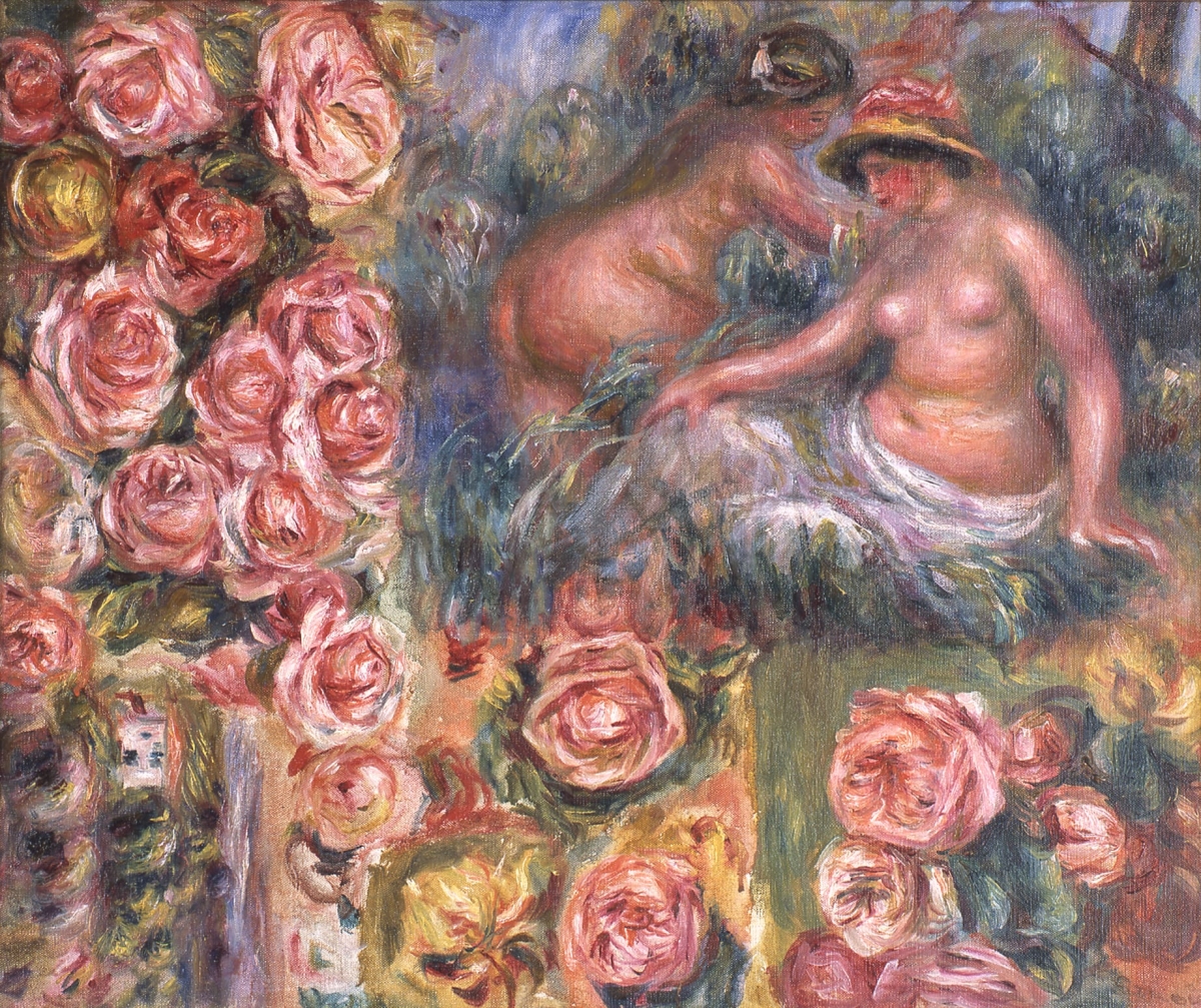 古典様式から晩年の豊潤な様式への転換期に描かれた大作「果物をもった横たわる裸婦」をはじめ、戸外で裸婦を画題とした作品も多数展示。ルノワールは愛情をもって対象物と向き合い、どの作品も透き通るような白い肌や丸みを強調した曲線ラインによって生命力や肉体的美しさを表現している。晩年期には赤味を帯びた色調が画面全体にハーモニーとなって響き合い、観るものを魅了する。裸婦の作品も時代によって異なり、見比べるのも一興だ。