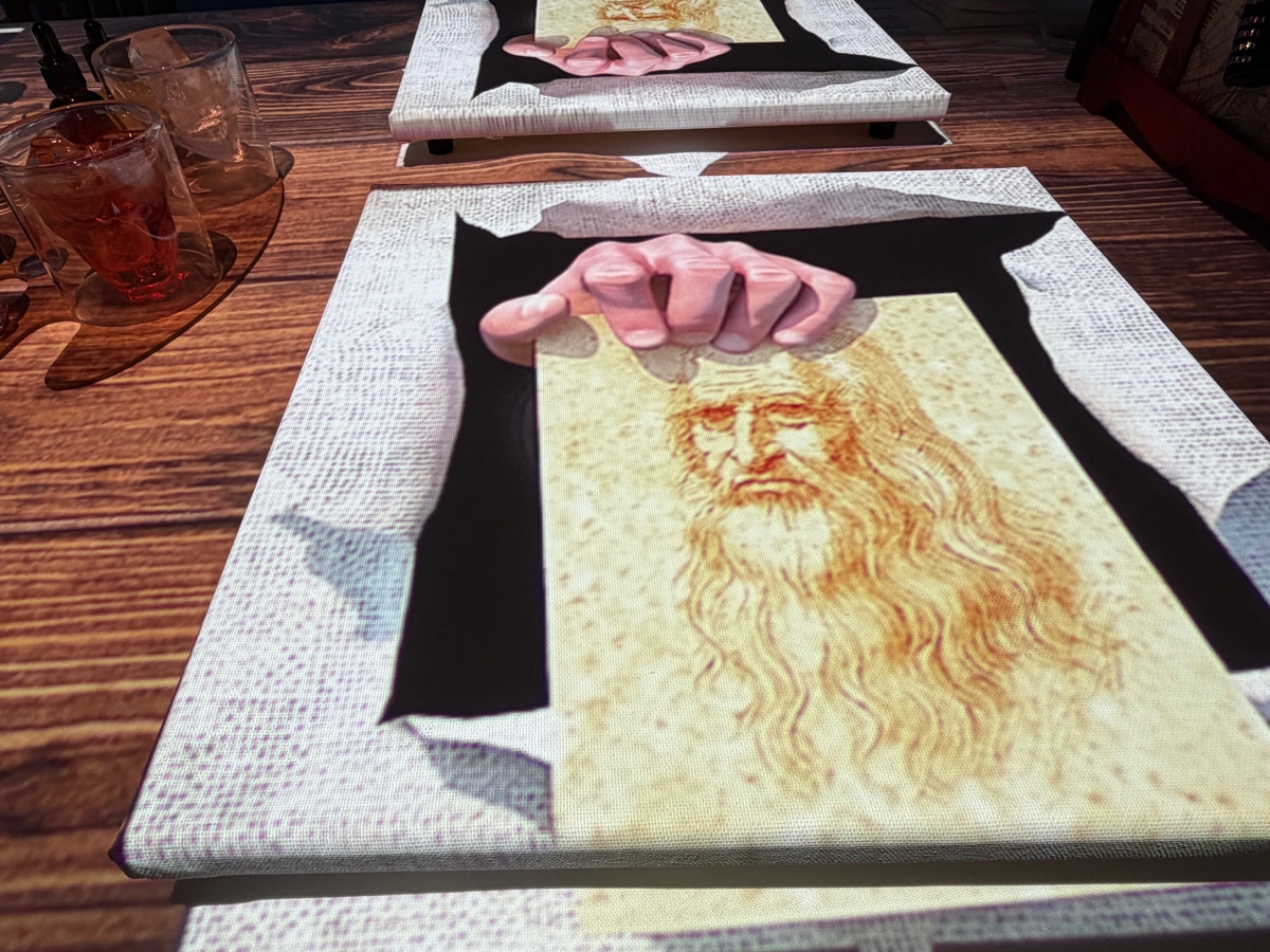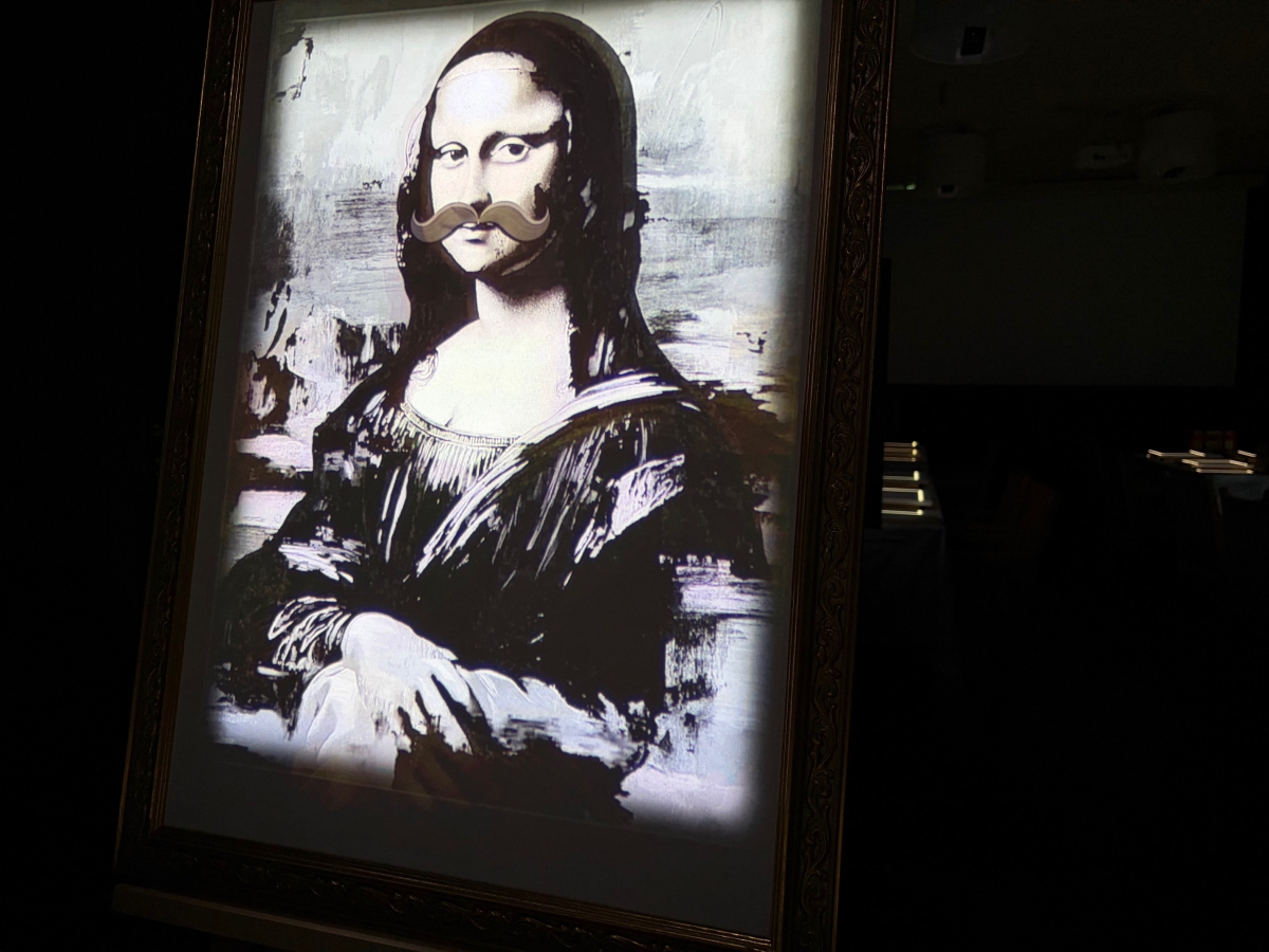 各テーブルには額縁に納まった名画「モナ・リザ」がセット。通常は表情を変えず微笑みを浮かべるだけのモナ・リザだが、巧みに語り、表情を変え、ときに別のアーティストたちに扮してゲストを盛り上げてくれる。
