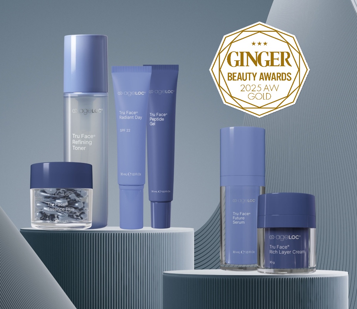 半年に1回開催される‟本当に効くコスメはどれ?!”を決定する「GINGER BEAUTY AWARD」。2025年下半期も本当に数多くの新商品が登場し、そのどれもが今までにない成分や使い心地のものばかり。審査会に参加した美GINGERメンバーが、一品一品を真剣にお試しして決定した13部門の1位~3位はどれもが甲乙つけがたい特徴があり、キレイを育むために安心して肌を預けられるものに。なかでも審査員たちの吟味する時間が長かったのが【スキンケアライン部門/金賞】に輝いた「ageLOC® トゥルー フェイス®」。その理由を深掘りしてみます。