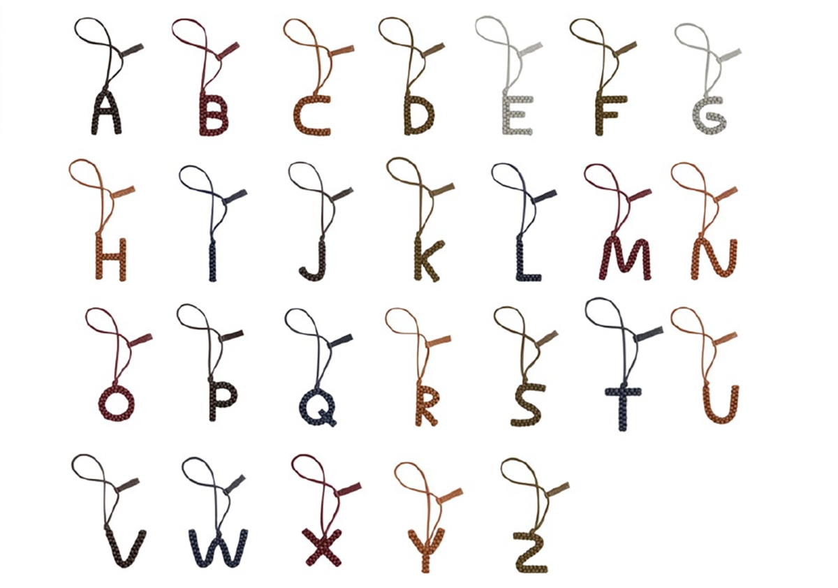 ボッテガ・ヴェネタから登場したのが、A〜Zの26文字から選べるアルファベットチャーム。ふっくらとしたナッパレザーを4mm幅のチューブ状に仕立て、職人が手作業で丁寧に編み上げたイントレチャート仕様。1文字に約4〜6メートルのレザーを使い、完成までに半日を要するという、まさに“クラフツマンシップの結晶”。
