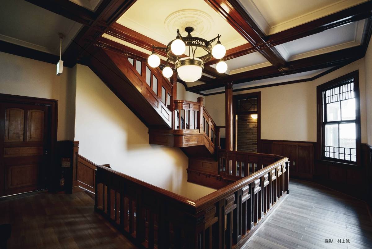 昭和2年(1927年)に近代建築の巨匠、武田五一が手がけた島津製作所旧本社ビルを、2012年にレストラン、ウェディング、パーティーのための空間にコンバージョン。アーチ型の窓やロマネスク様式の柱頭、ファザードには丸いガラス窓など、建設当時のレトロモダンな面影を垣間見ることができる。