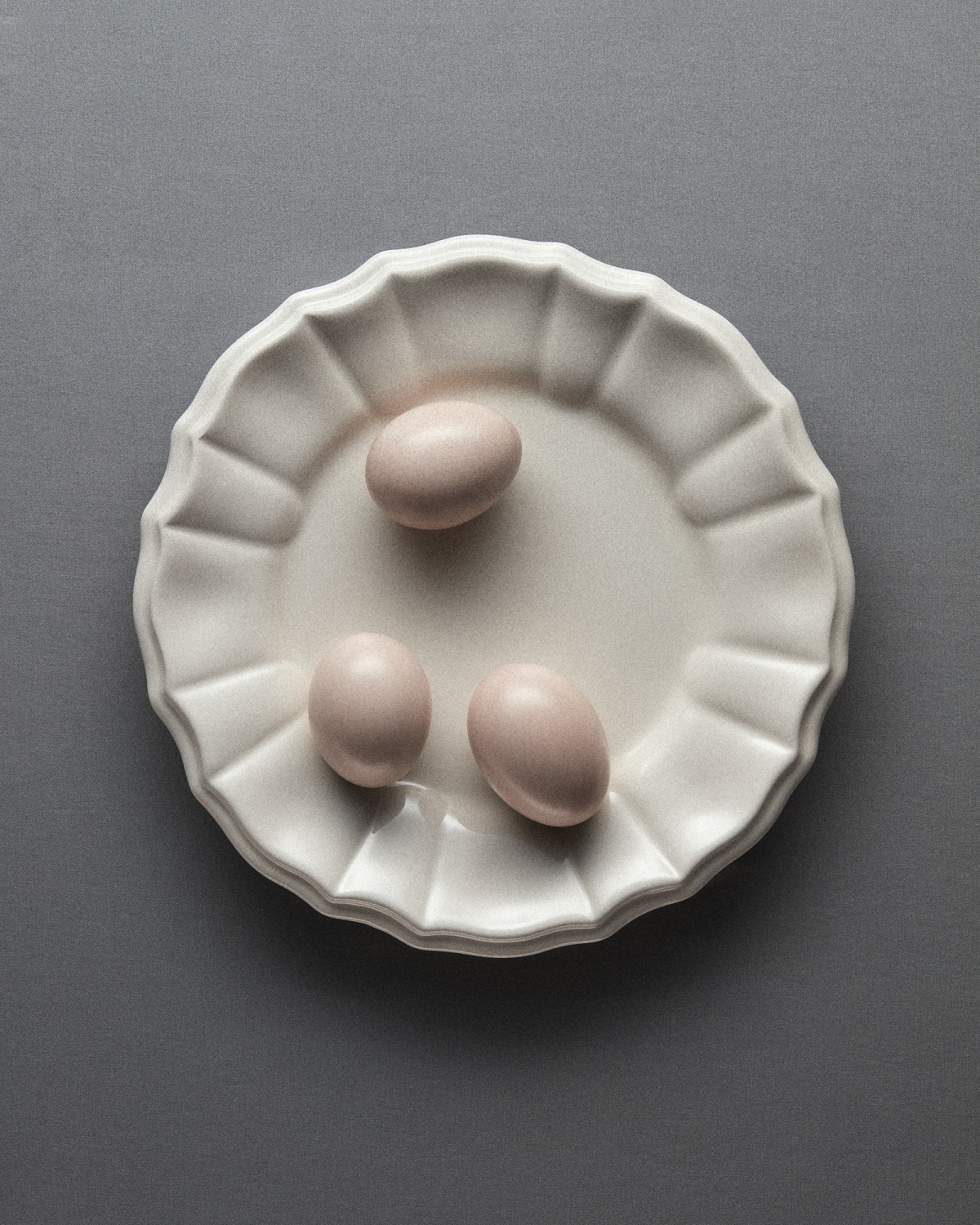 卵を「始まりを示す完璧なメタファー」と位置付けるジョナサン・アンダーソンにとって卵は大切なモチーフ(ディオールのクリエイティブディレクターに就任後、最初のショーの招待状のモチーフとして使ったほど!)。その卵を今度は芸術的なプレートとして発表しました。